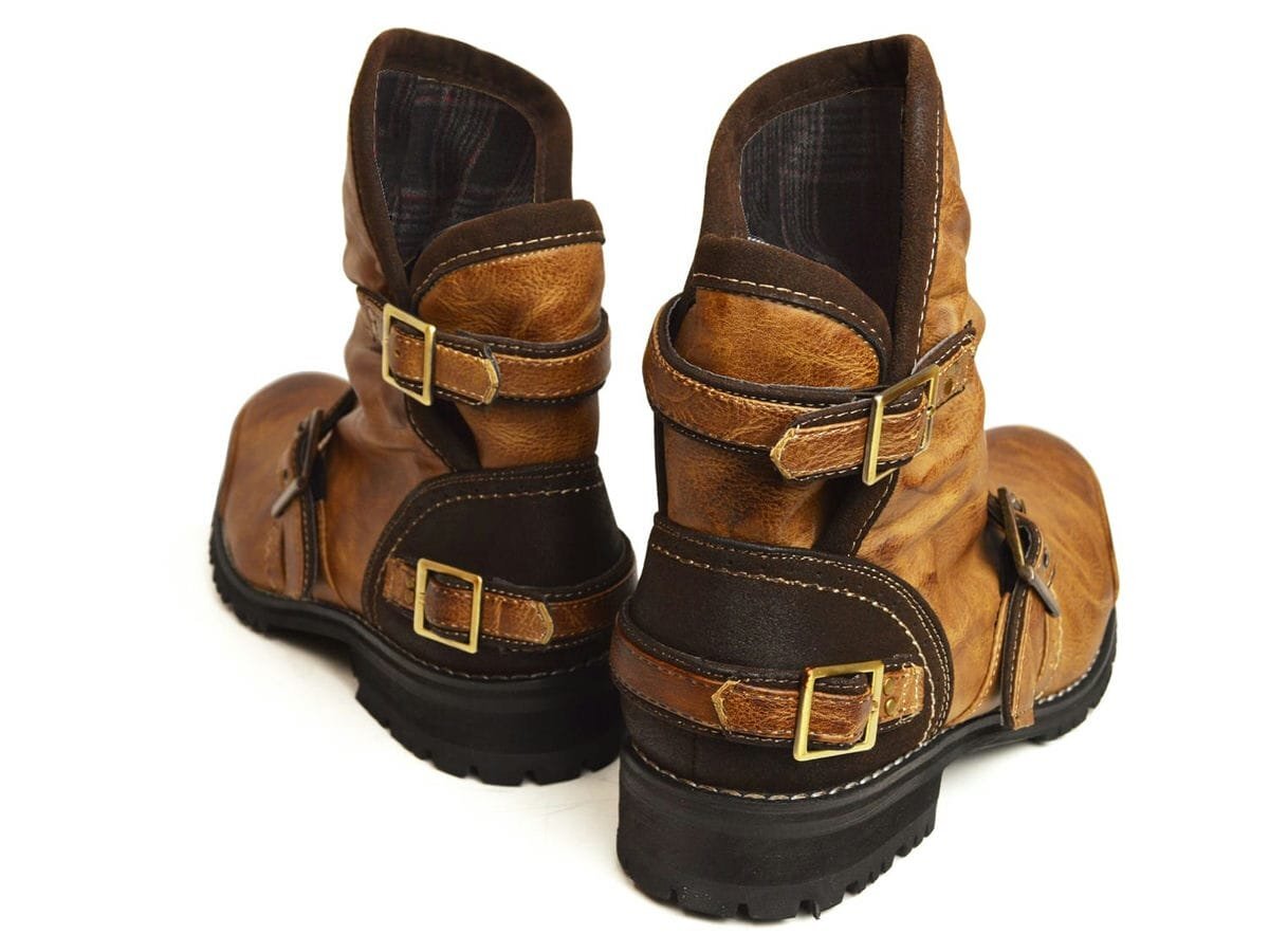 新品■25.5cm メンズブーツ エンジニアブーツ ドレープブーツ 2way チェック メンズ ショートブーツ ワークブーツ ヴィンテージ 男 靴