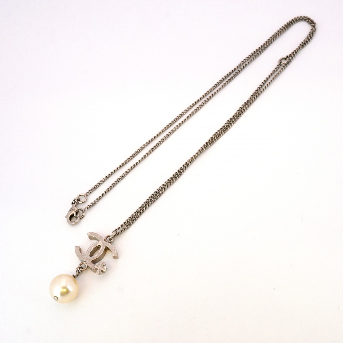 【5jmb0933】シャネル ネックレス ココマーク メタル フェイクパール シルバー【中古】レディース