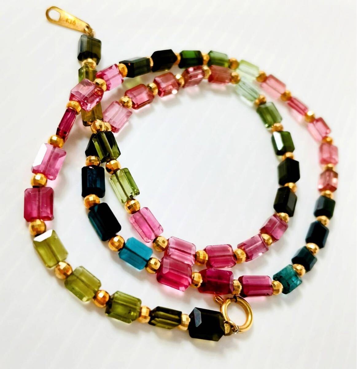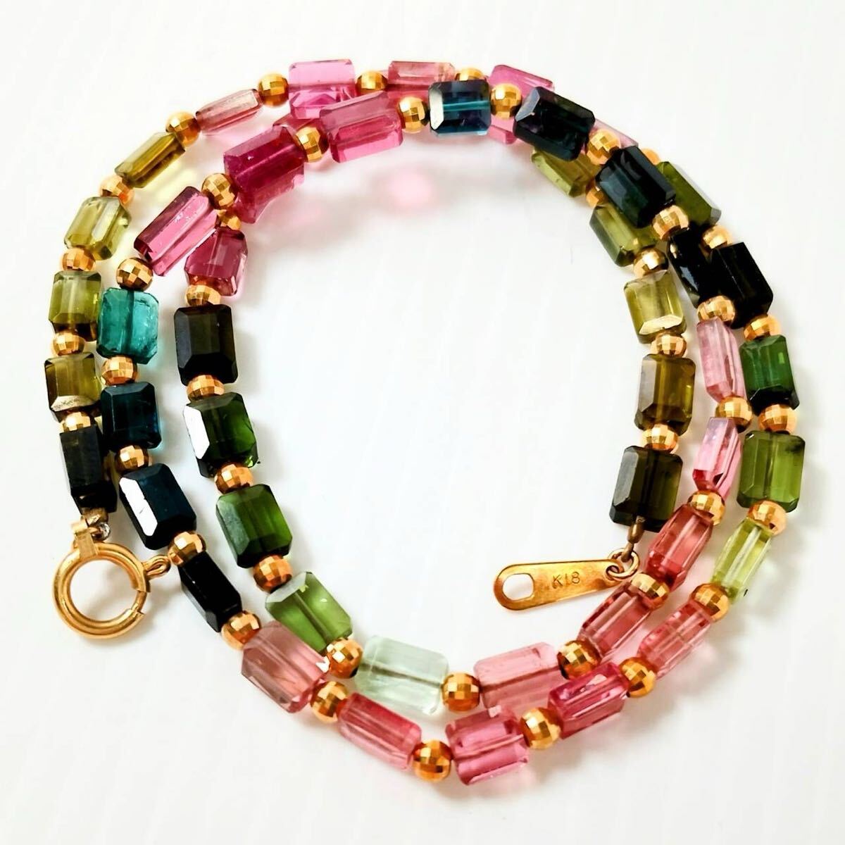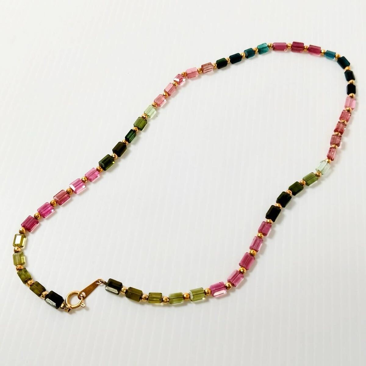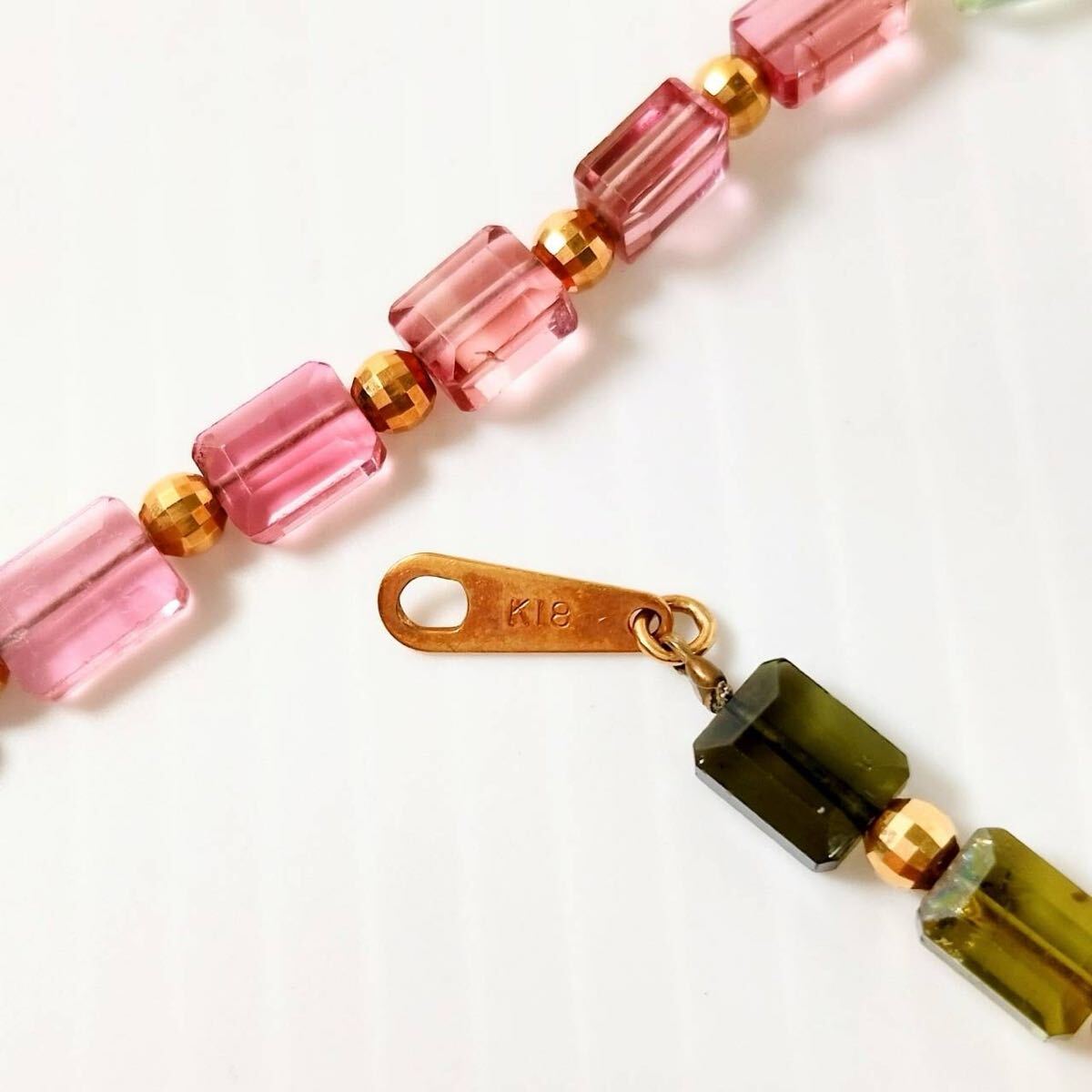 K18 天然トルマリン ネックレス tourmaline necklace jewelry ピンク グリーン ジュエリー 10.9g 長さ約44cm ① アクセサリー レディース