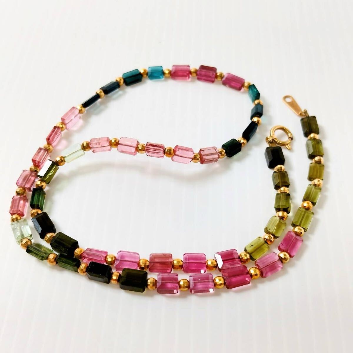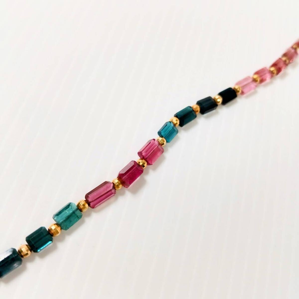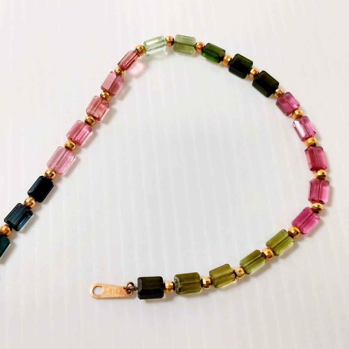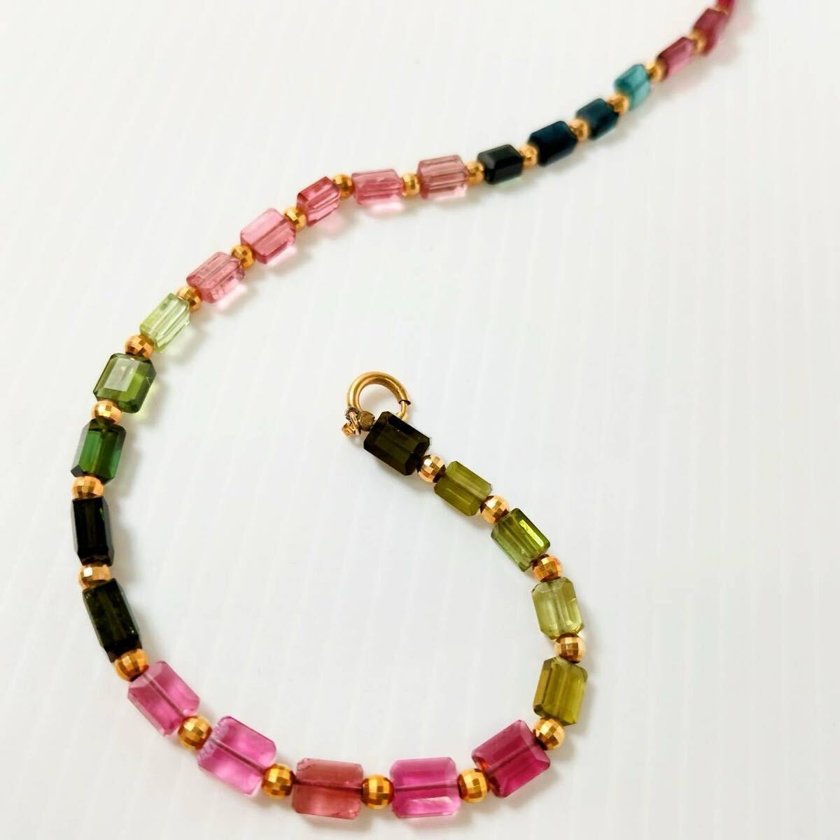 K18 天然トルマリン ネックレス tourmaline necklace jewelry ピンク グリーン ジュエリー 10.9g 長さ約44cm ① アクセサリー レディース