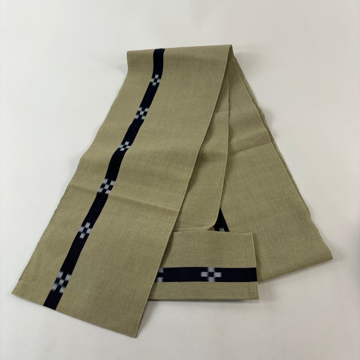 | 名古屋帯 美品 名品 八寸名古屋帯 松葉仕立て 縞 幾何学模様 ベージュ 綿 【中古】 |