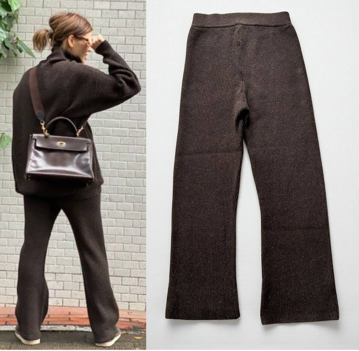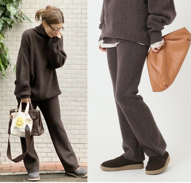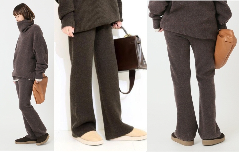 ウールカシミアの素材で暖かくてソフトな風合いのニットパンツ。