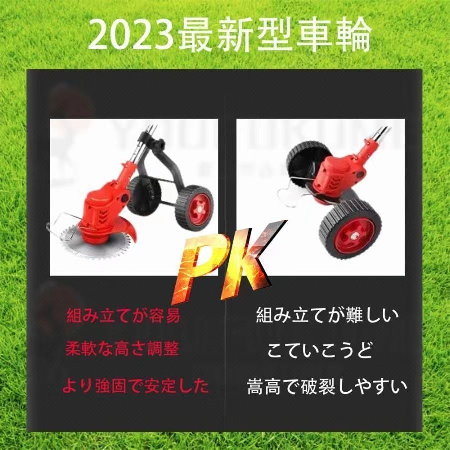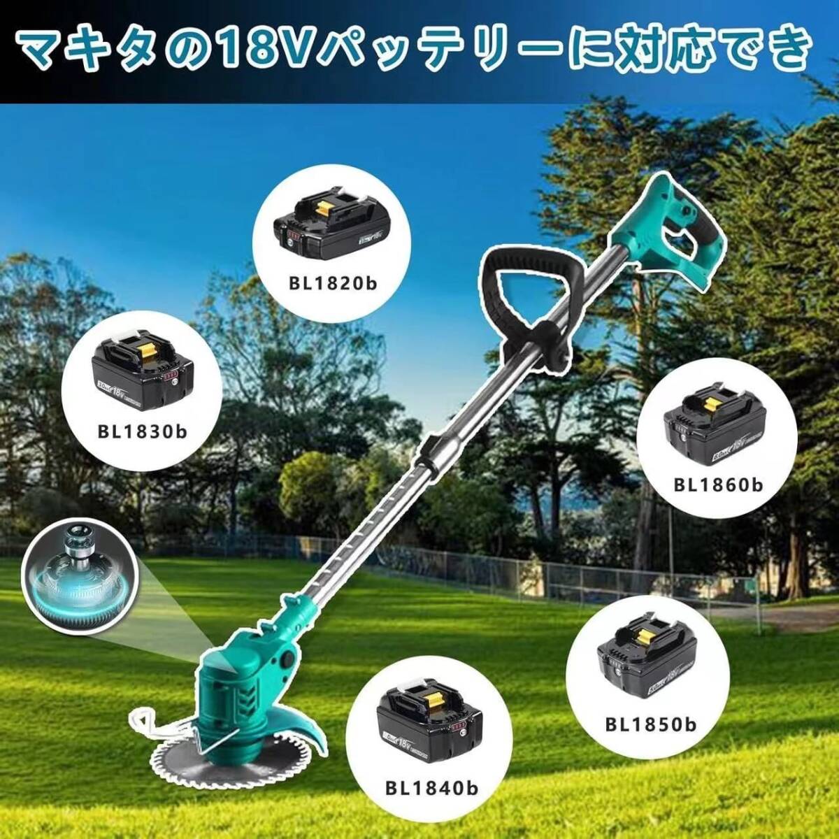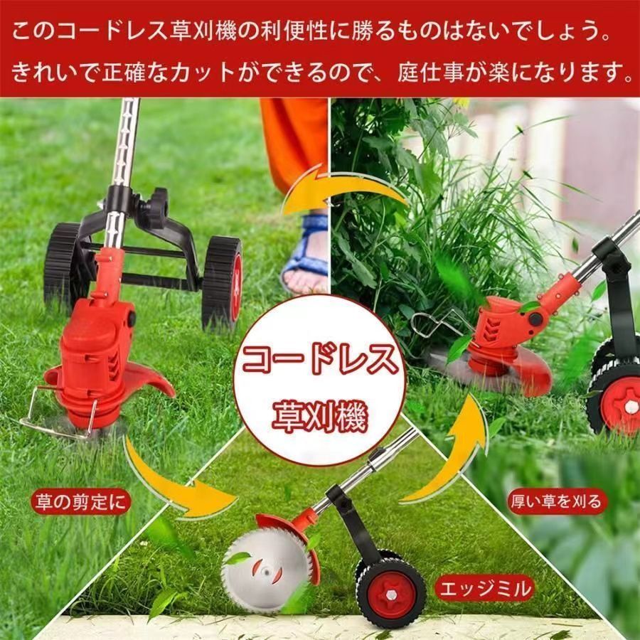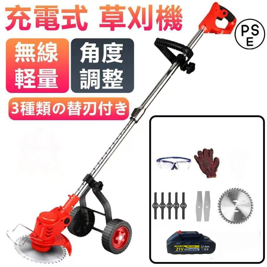 バッテリー×1 草刈機 草刈り機 車輪付き マキタ18Vバッテリー互換 電動 芝刈り機 刈払機 3種類のブレード替え刃 園芸機械 角度調整