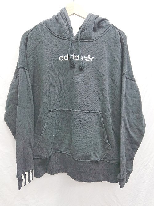 ◇ adidas アディダス 三つ葉 トレフォイル 裏起毛 長袖 プルオーバーパーカー サイズUS S UK 10 ブラック メンズ P