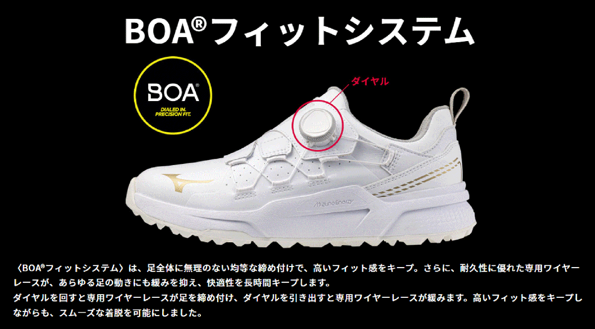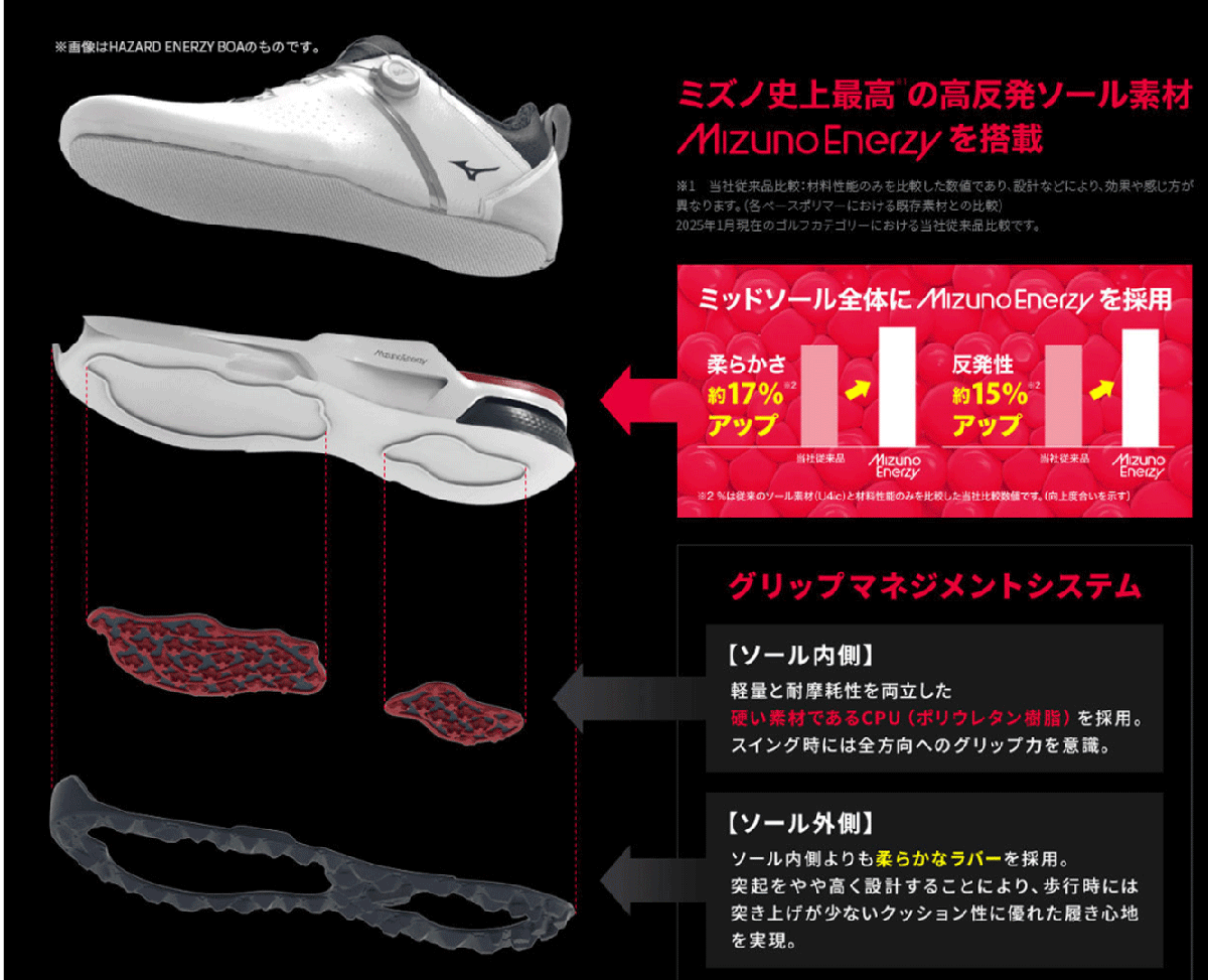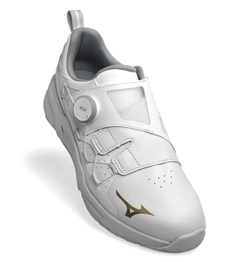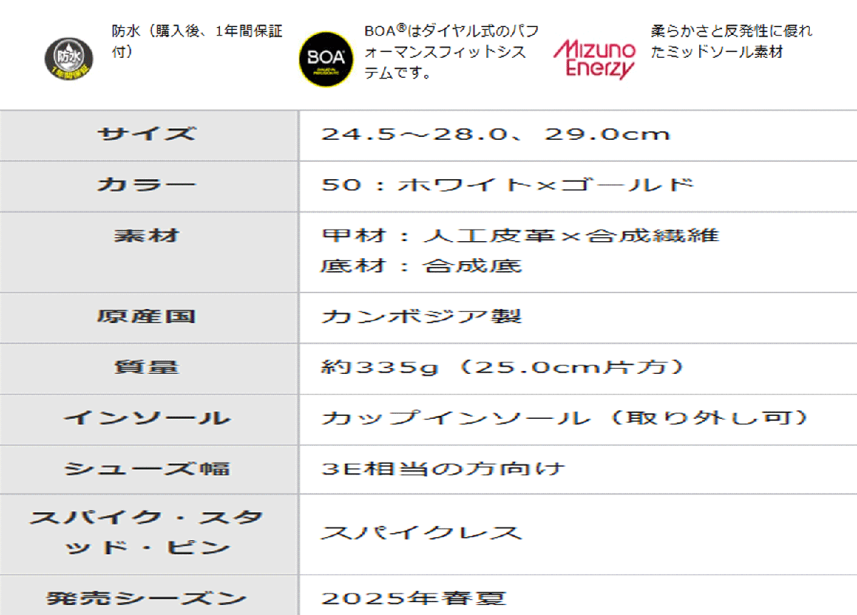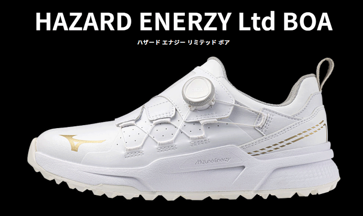 新品■2025.3■ミズノ■ハザード エナジー ボア スパイクレス■51GM2500■ホワイト/ゴールド■24.5CM:EEE■グリップ力を追求■正規品