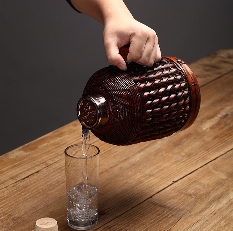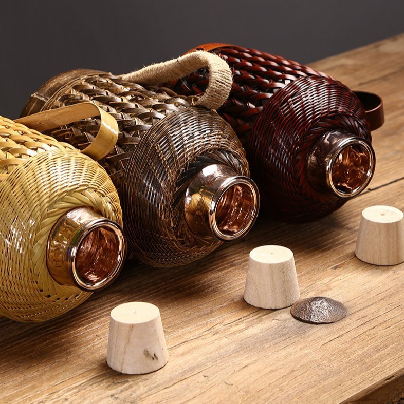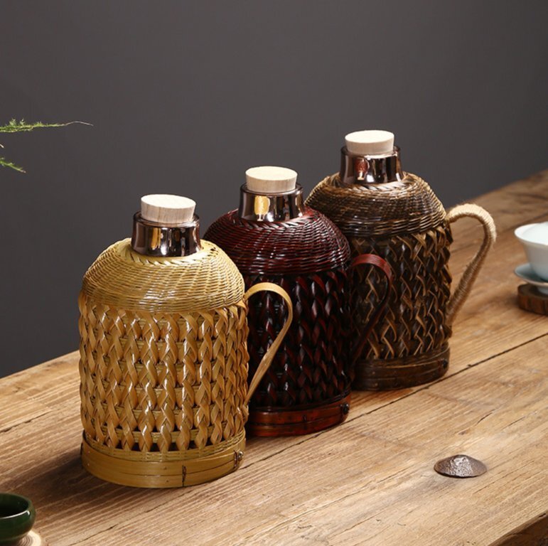 竹で編んだ魔法瓶家庭用の手で伝統的な紫竹で編んだ花中国式のレトロな茶室レストラン大容量保温魔法瓶1000ML