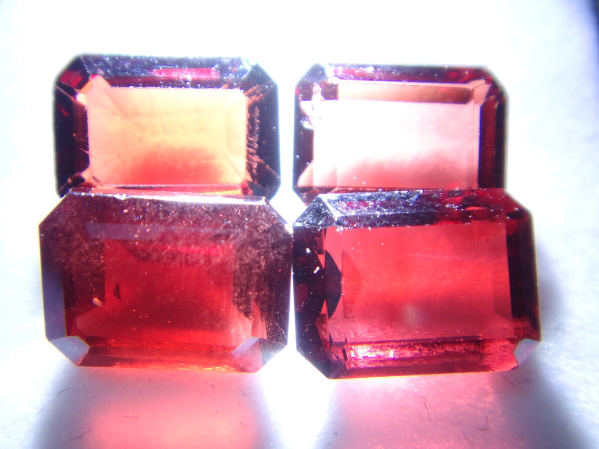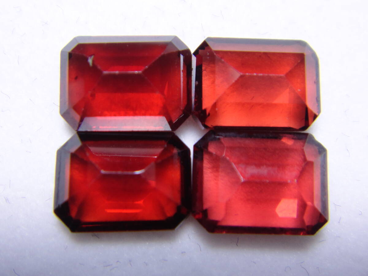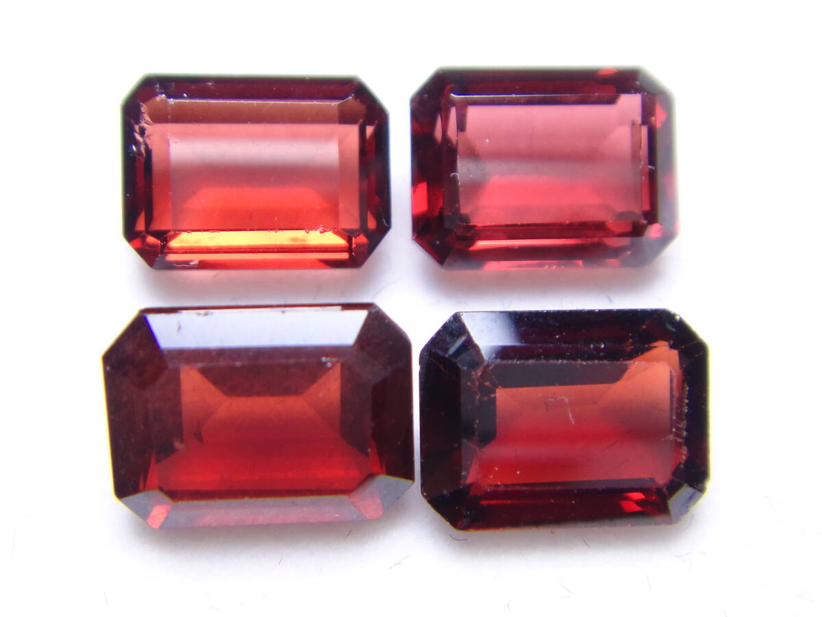 天然石 宝石! ガーネット ルース 4個おまとめ エメラルドカット 新品ケース付き ヴィンテージ ハンドメイド用素材などに I515