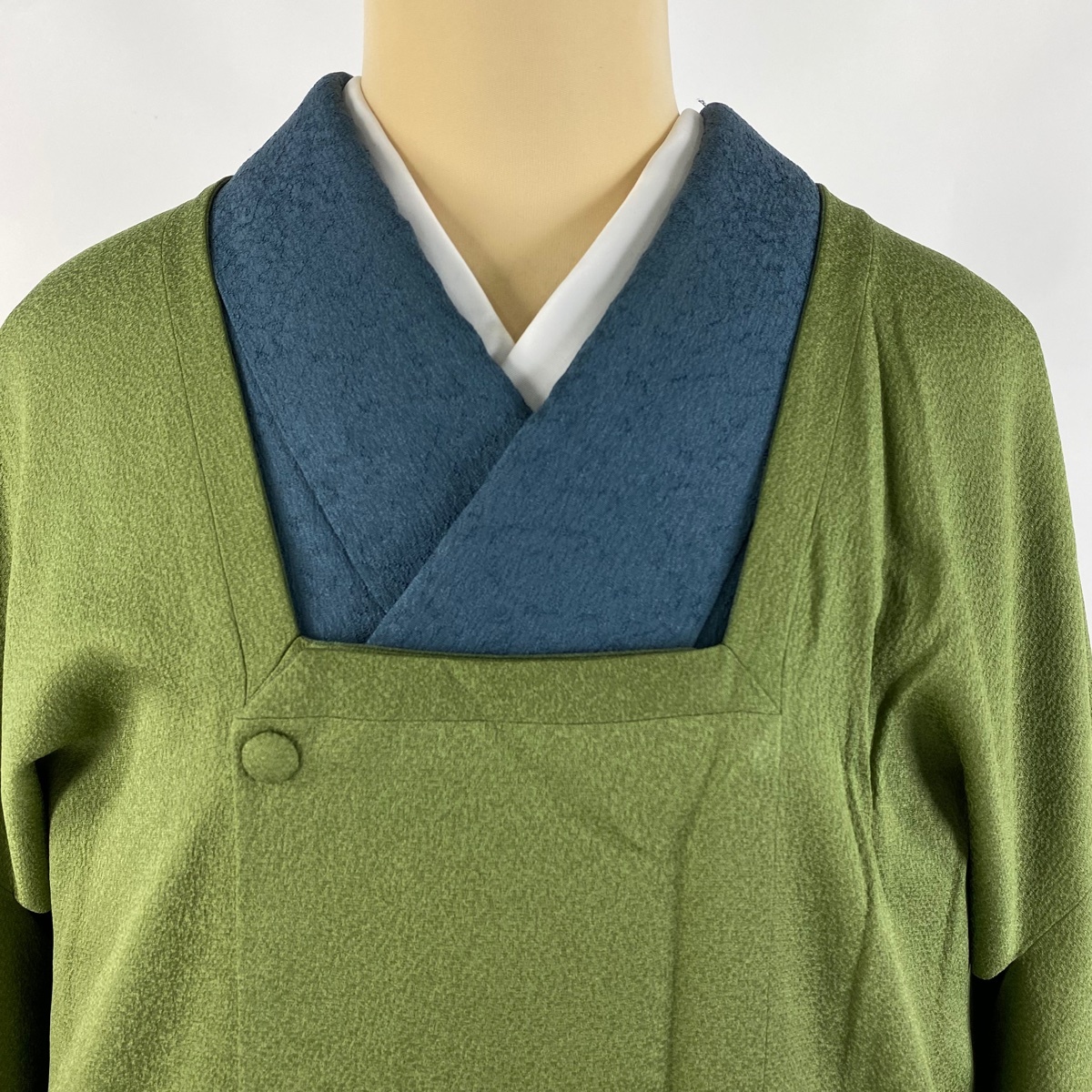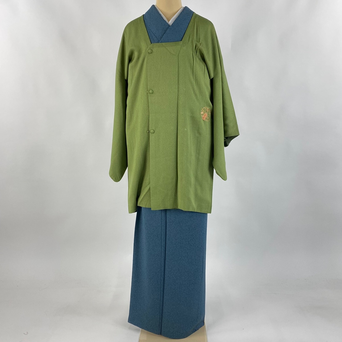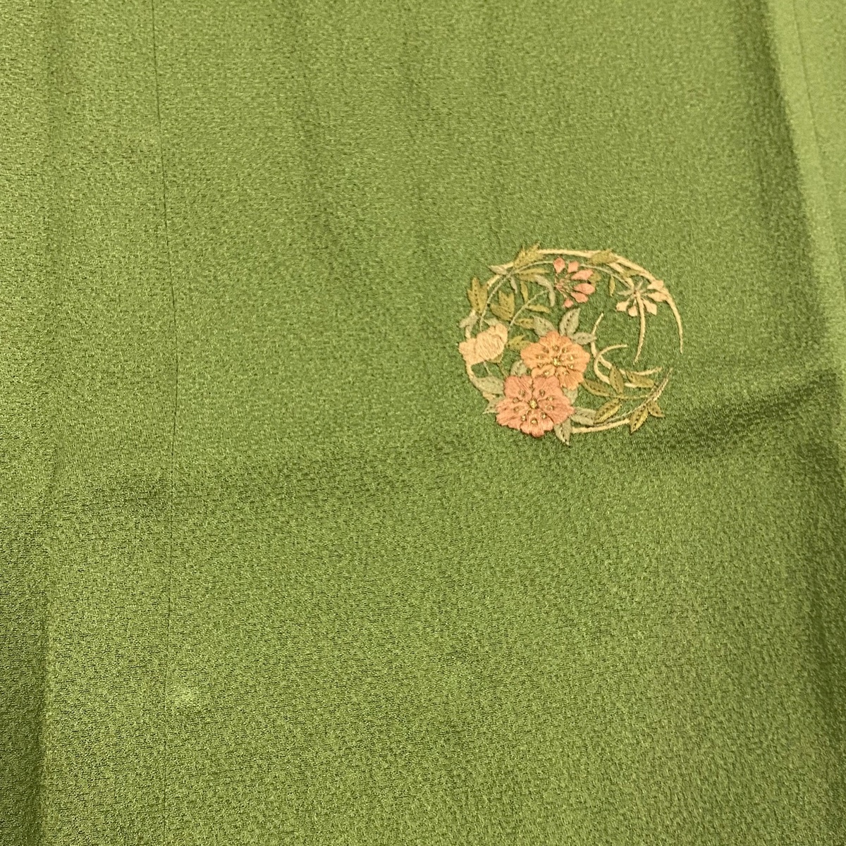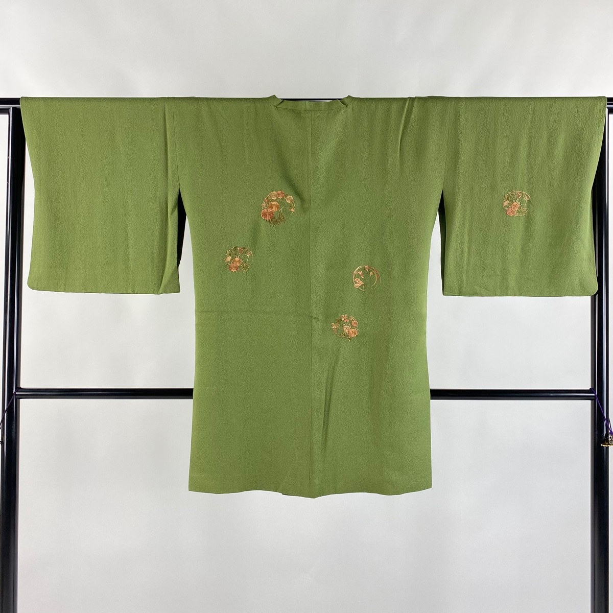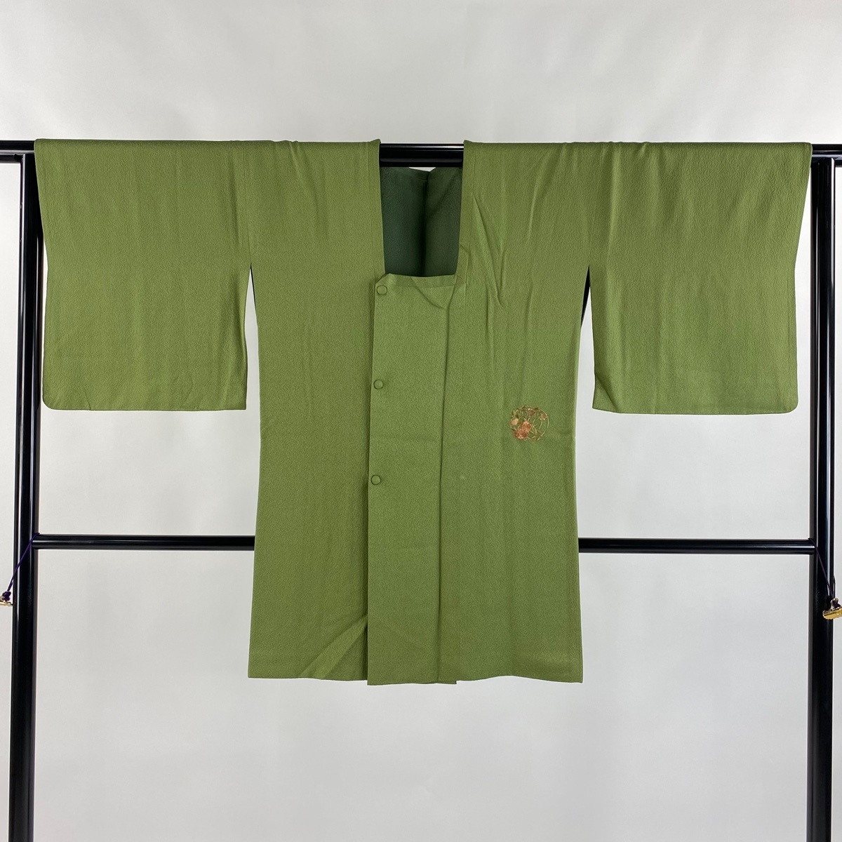| 道行 美品 秀品 和装コート 角衿 花丸文 刺繍 金糸 抹茶色 身丈88 裄丈65.5 M 正絹 【中古】 |