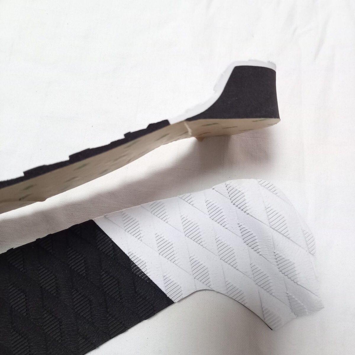 ダイアモンド型の溝パターンが特徴で、回転時に前足をしっかりとボードに固定し、安定感を向上させます。