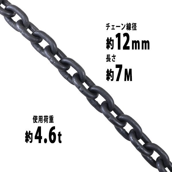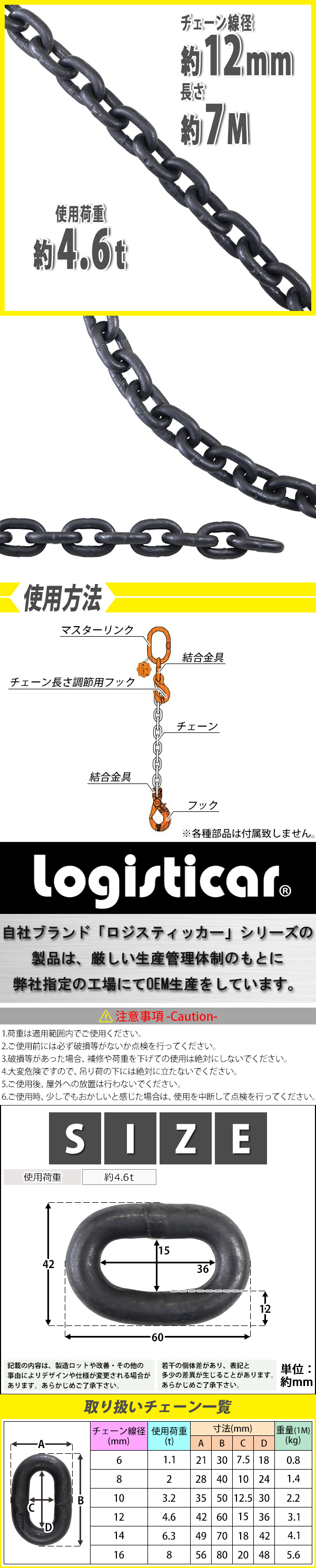 | 商品名 | 送料無料 チェーン 線径約12mm 使用荷重約4.6t 約4600kg 約7m G80 エコノミーモデル 鎖 くさり 吊り具 チェーンスリング スリングチェーン リンクチェーン チェイン 金具 クレーン ホイスト 玉掛け 吊り上げ 運搬 建築 土木 鉄工 運輸 造船 chain12mm7m |