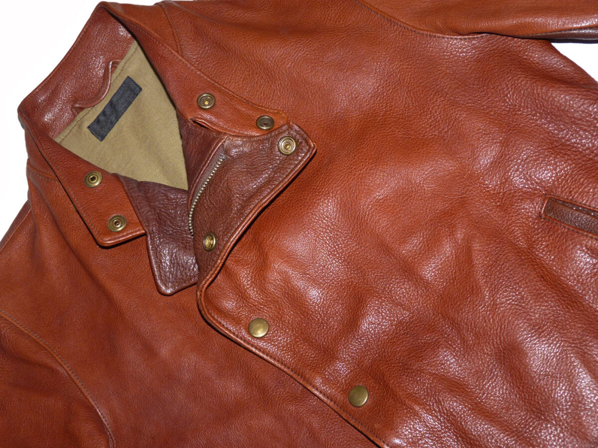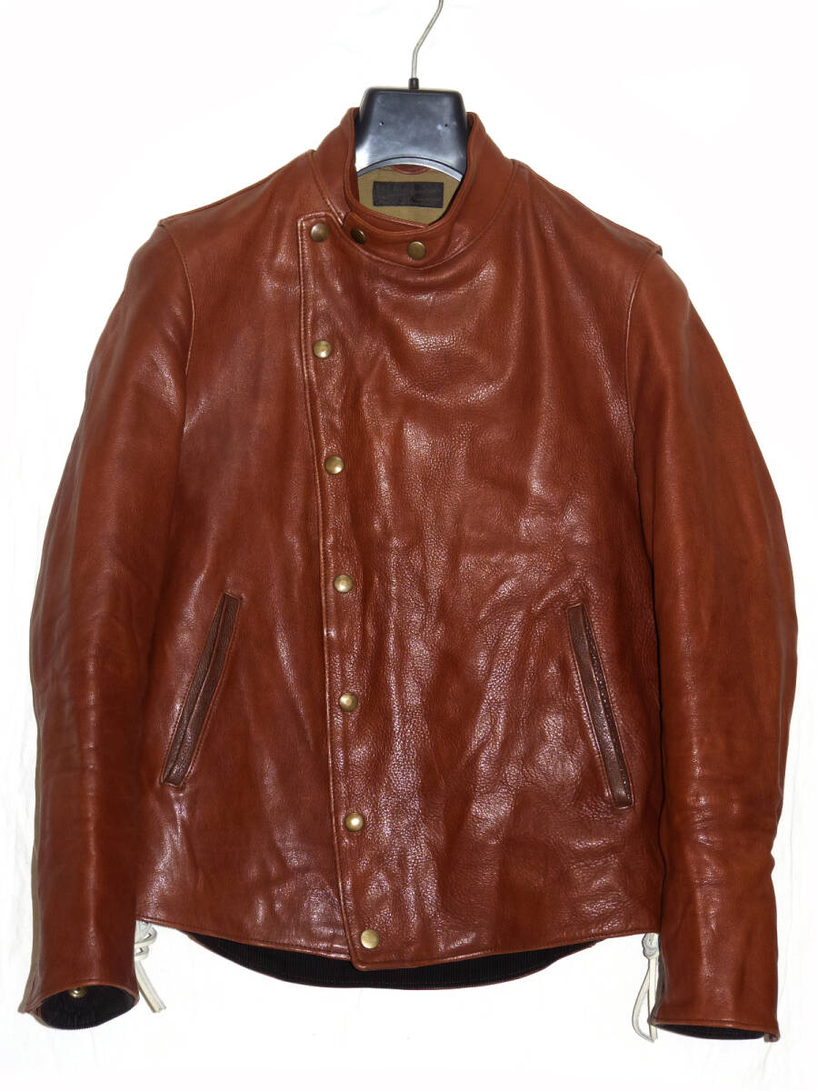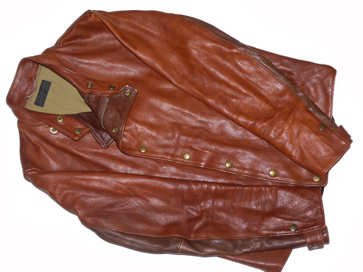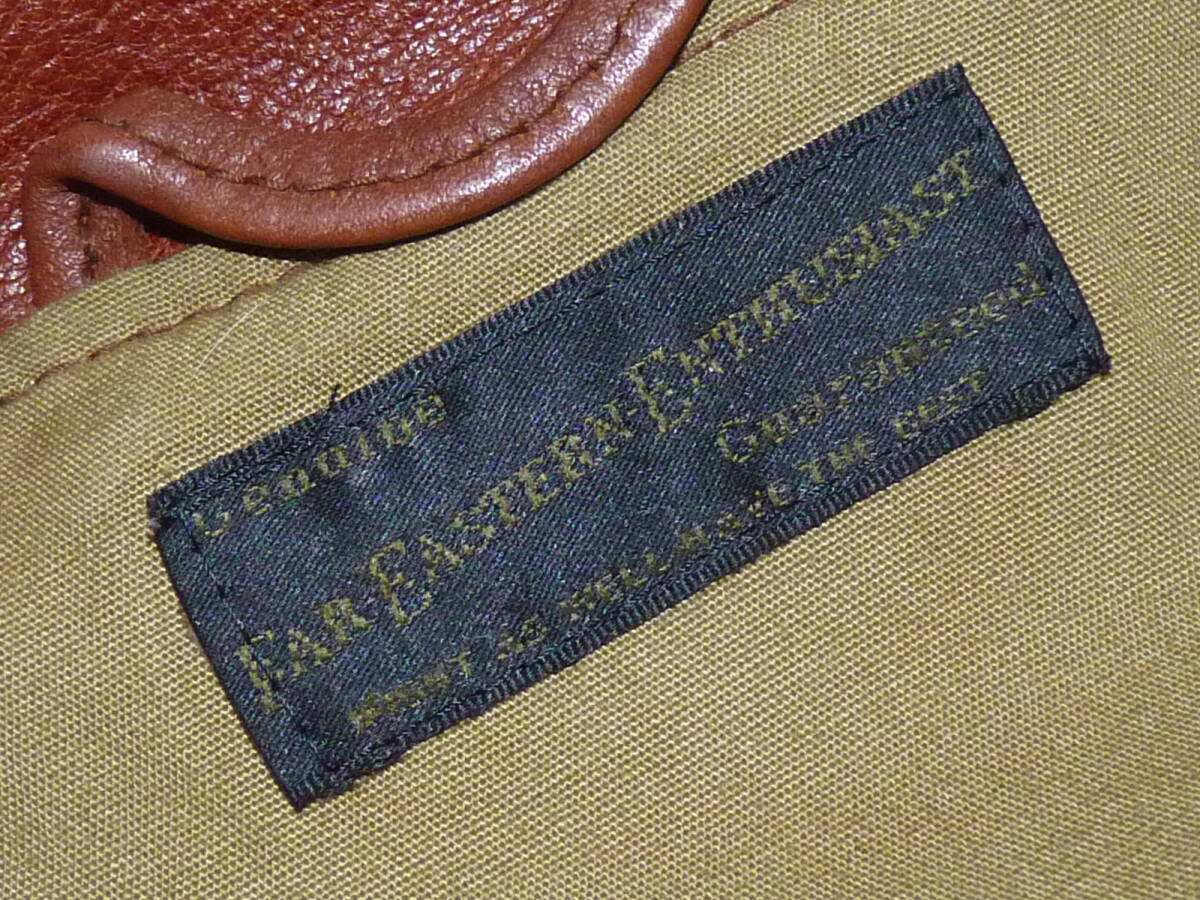 | 【ブランド】 FAR EASTERN ENTHUSIAST 【サイズ】 表記:S 肩幅:41センチ 身幅:48センチ 着丈:64センチ 袖丈:59.5センチ 【素材】 写真4枚目をご参考にして下さい。 【カラー】 赤茶系 【品番】 FE1502-JK05 【コンディション】 腰のサイドの革ひもが白色に代わっております。 使用にともなうカラーレザー特有の色むら等多少ありますが 目立った汚れやダメージ等は無くキレイな状態です。 この機会にいかがでしょうか。 | |