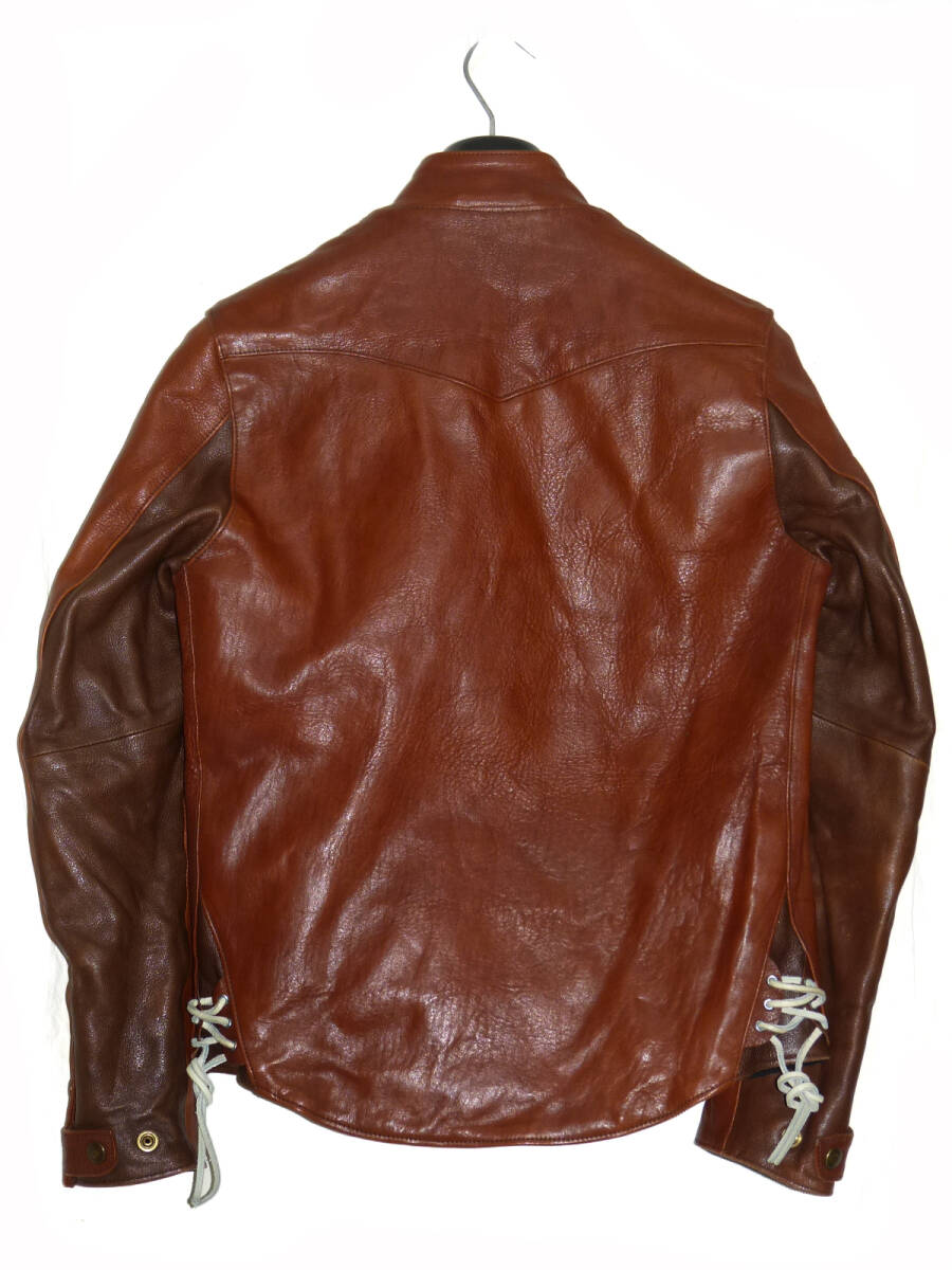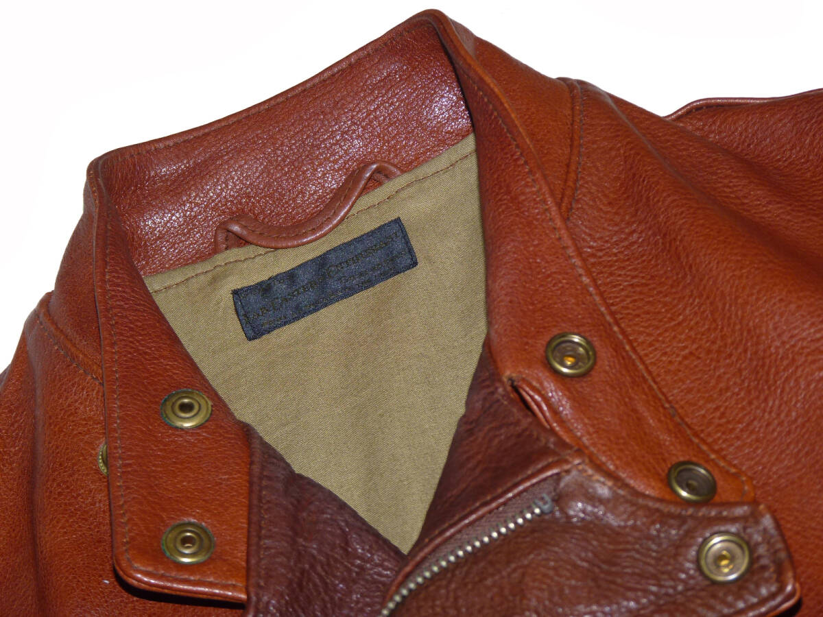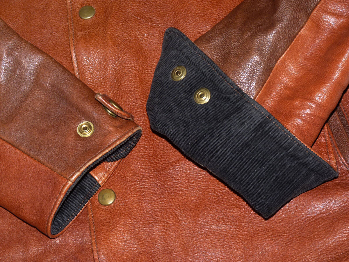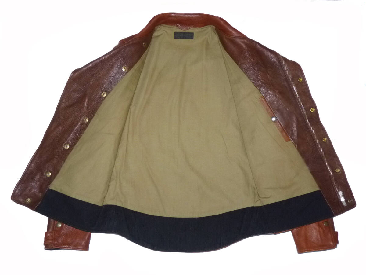 | 【ブランド】 FAR EASTERN ENTHUSIAST 【サイズ】 表記:S 肩幅:41センチ 身幅:48センチ 着丈:64センチ 袖丈:59.5センチ 【素材】 写真4枚目をご参考にして下さい。 【カラー】 赤茶系 【品番】 FE1502-JK05 【コンディション】 腰のサイドの革ひもが白色に代わっております。 使用にともなうカラーレザー特有の色むら等多少ありますが 目立った汚れやダメージ等は無くキレイな状態です。 この機会にいかがでしょうか。 | |