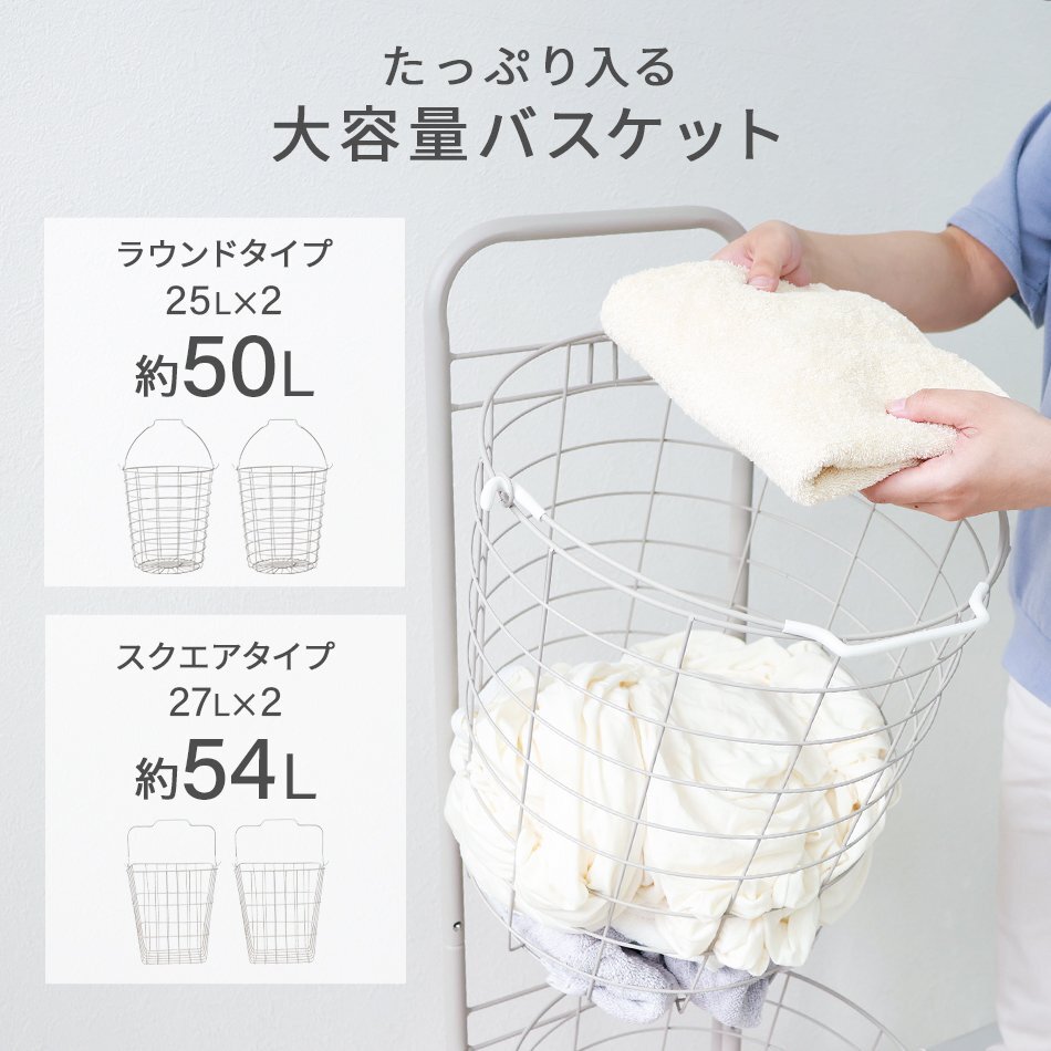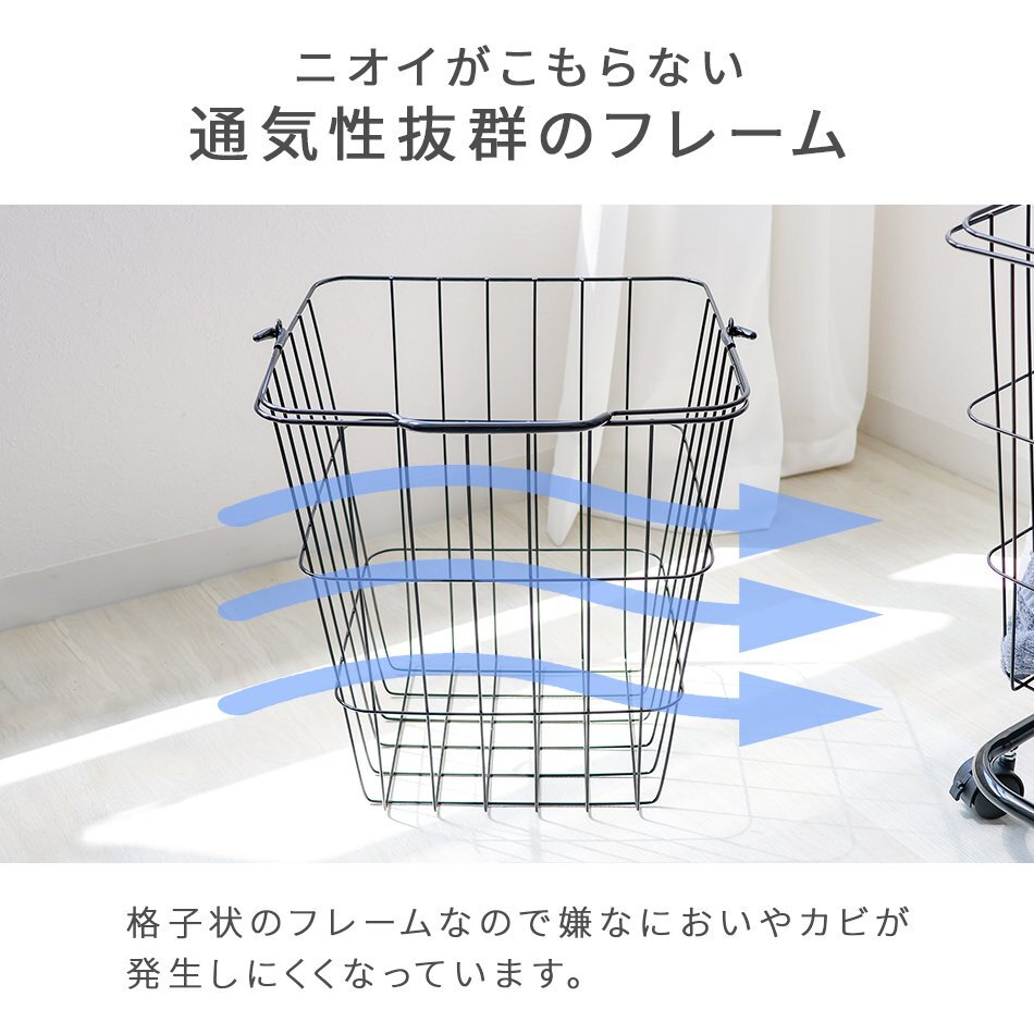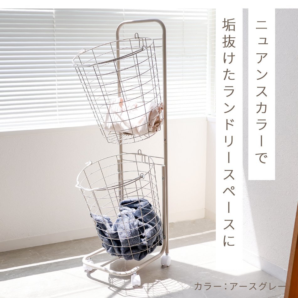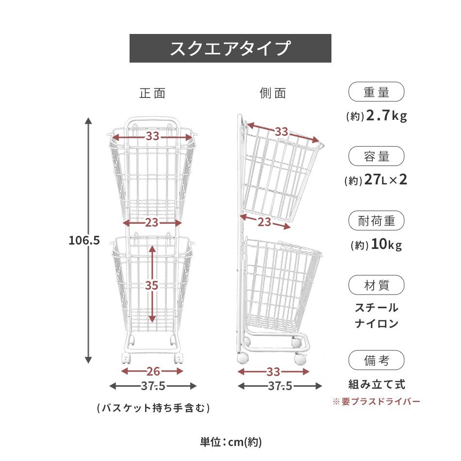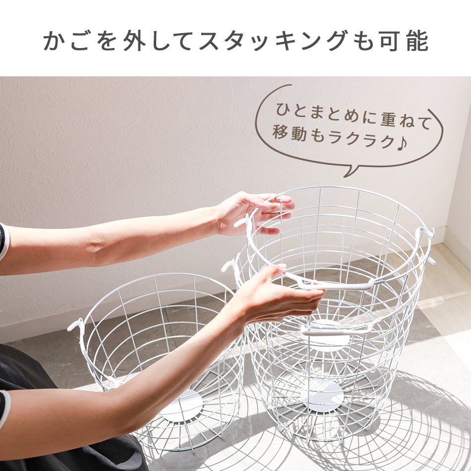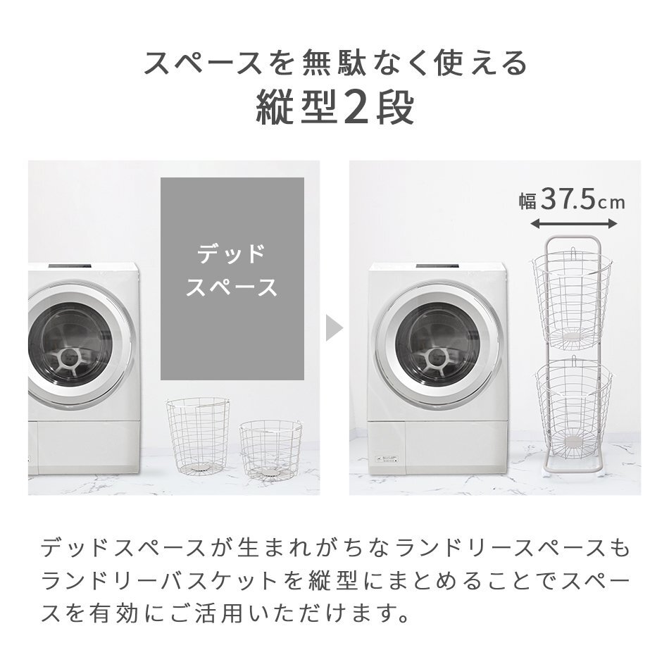 通常のバスケットを分別用に2つ並べて置くと幅を取り、上部にデッドスペースが生まれてしまいます。 こちらの商品は幅約35cmに2つのバスケットを縦に並べることが可能。 デッドスペースを活用することで物が多くなりがちな洗濯機まわりも無駄なくすっきり。 狭くなりがちなスペースを有効に活用することができます。 2つのバスケットは取り外しも可能で、持ち手があるのでベランダに運ぶ時なども便利にお使いいただけます。 キャスター付きで、ラックごとの移動もスムーズです。 ランドリー以外にキッチンの食品ストッカー、リビングの雑貨入れ、おもちゃ収納も使えます! 【商品仕様】 カラー:ホワイト 全体:約幅37.5×奥行37.5×高さ106.5cm バスケット内寸:約幅33×奥行33×高さ35cm 重量:(約)2.7kg 容量:(約)54L(上段27L、下段27L) バスケット耐荷重:(約)10kg 素材:スチール、ナイロン ランドリーバスケット 2段 3段 1段 大容量 ワイヤーバスケット ランドリーラック 洗濯物入れ かご 洗濯かご 洗濯物 脱衣かご ランドリー収納 ランドリーボックス 洋服 衣服 収納 おもちゃ収納 雑貨入れ おしゃれ シンプル 北欧 西海岸 人気 おすすめ WEIMALL |