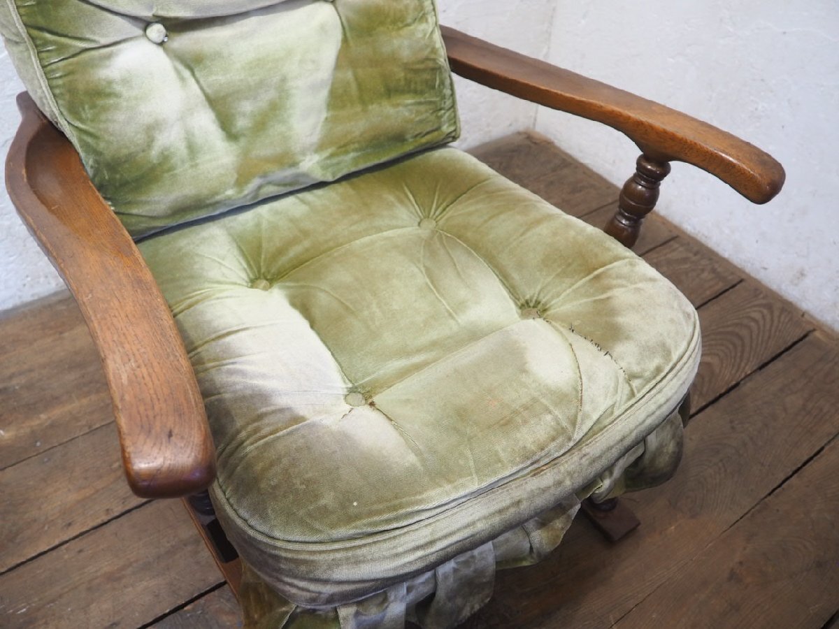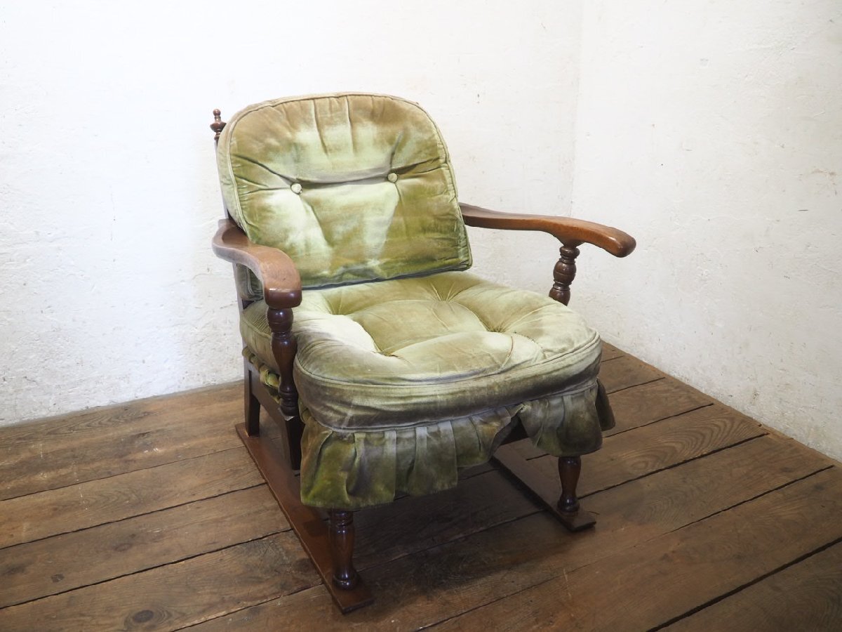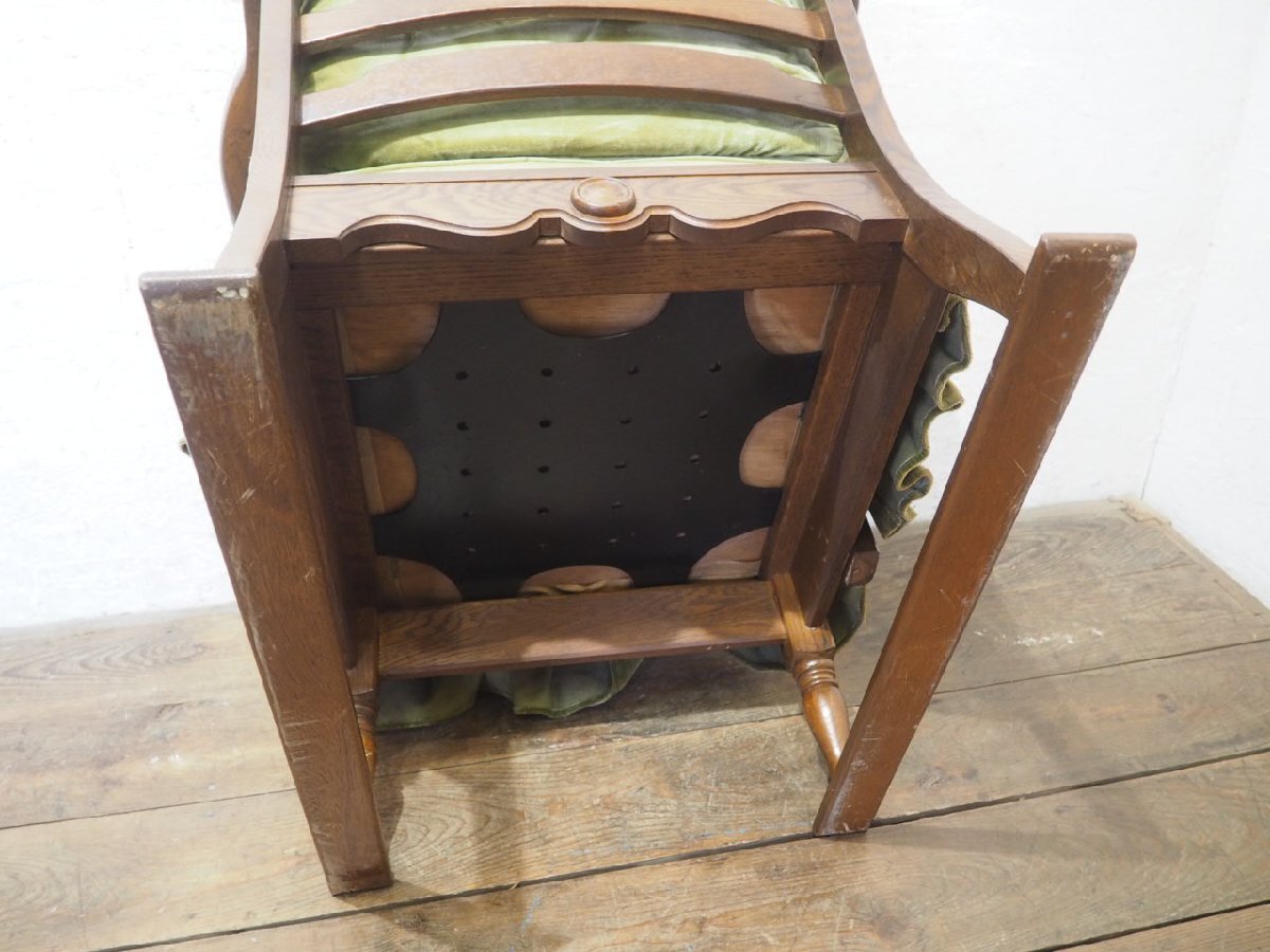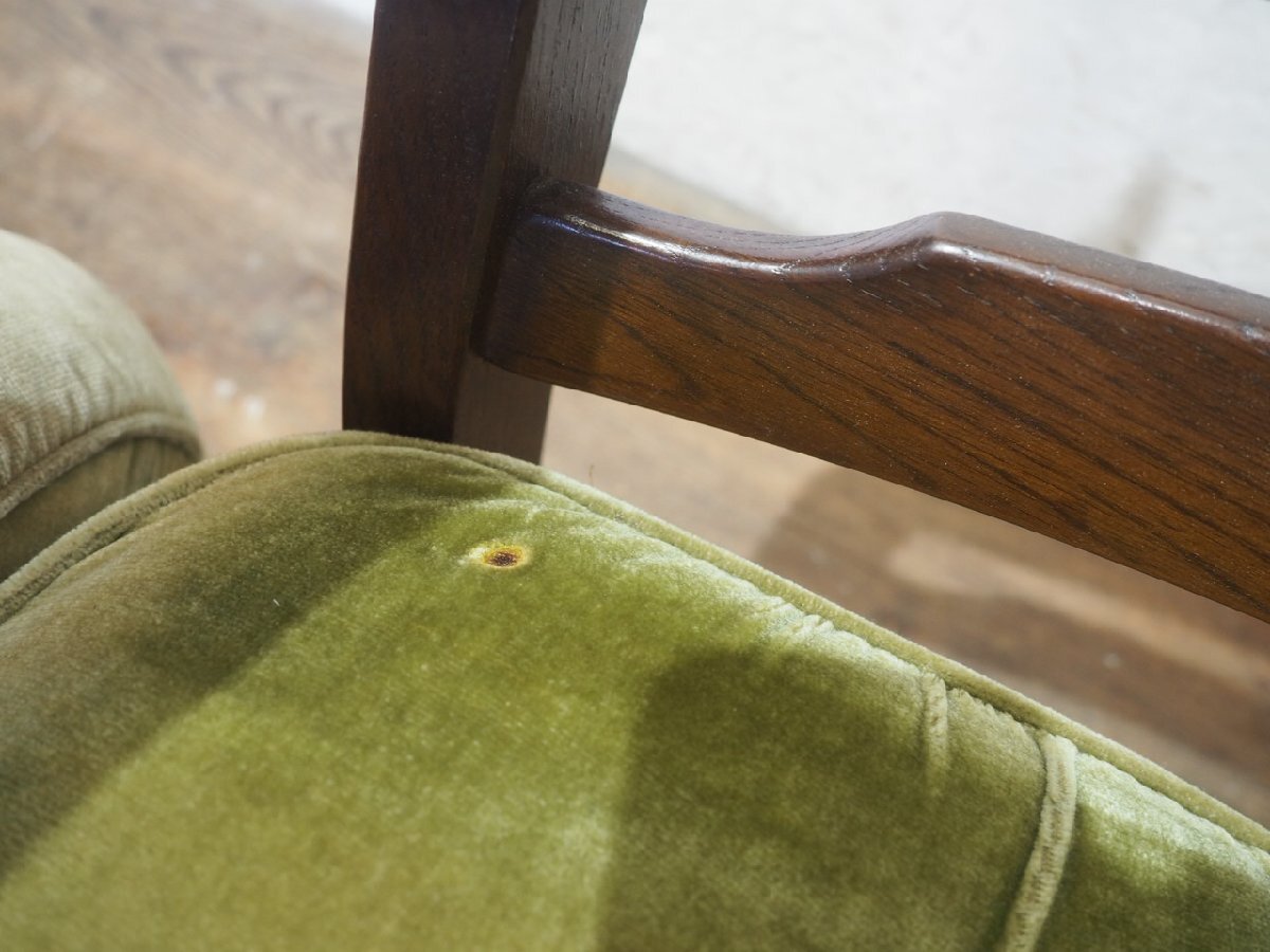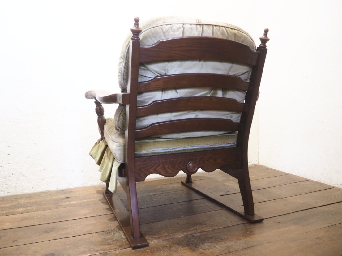 タ荷U0687◆②ヴィンテージ◆キツツキマークの古い木製シングルソファー◆飛騨産業 当時物 イス 椅子 アームチェア 1P P(ヤC)笹4(ラック上)