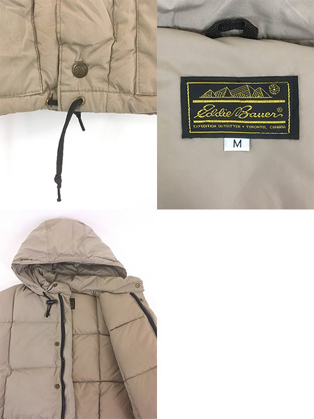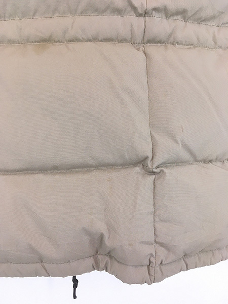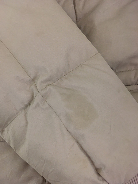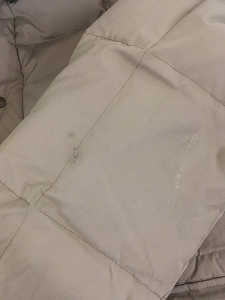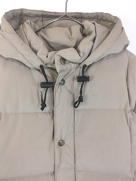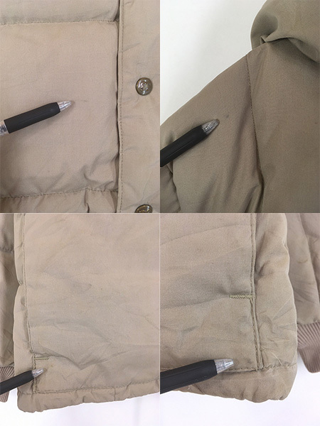 ウエストドローコード付き、刻印入りボタン、内側にたっぷりダウン。