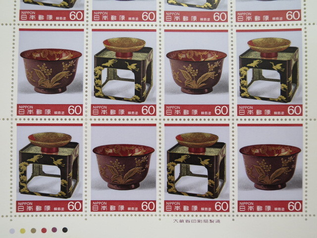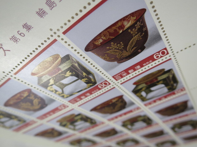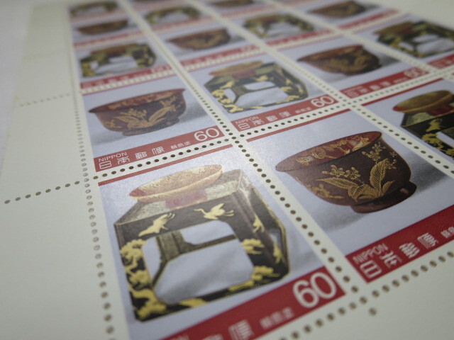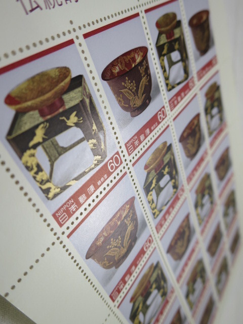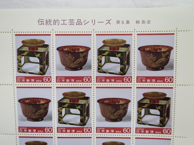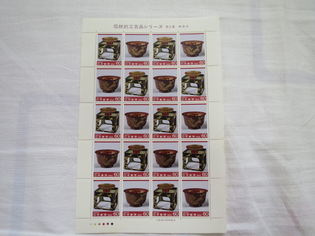 レア 希少 伝統的 工芸品 シリーズ 切手 シート 第6集 輪島塗 1985年 発行 額面 60円 20枚