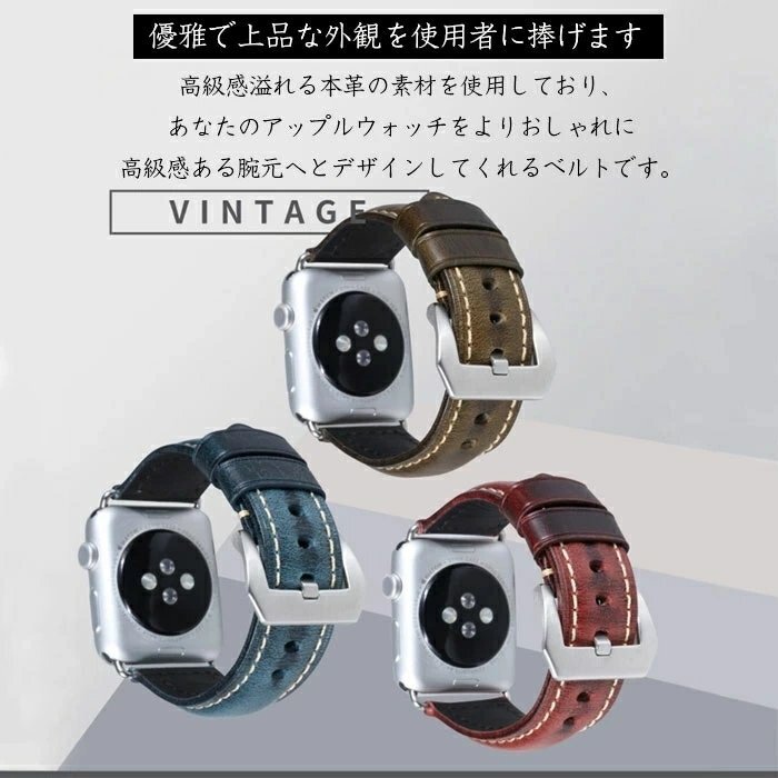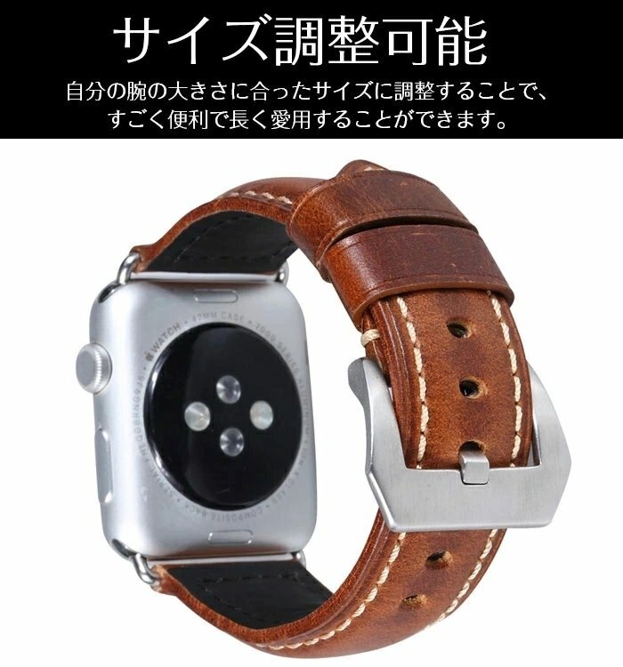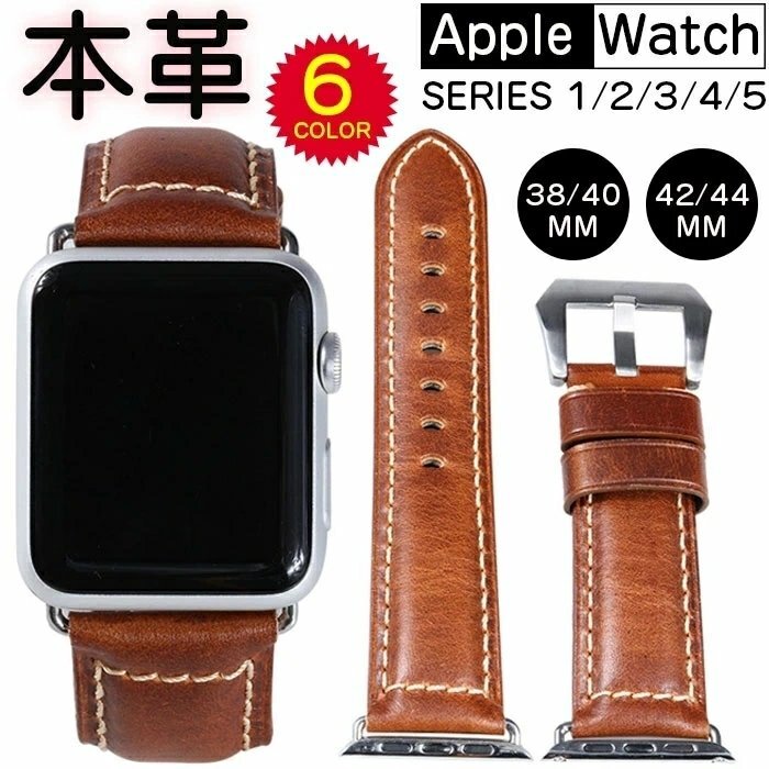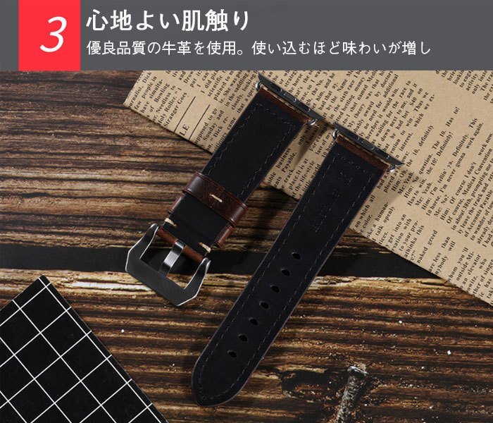 アップルウォッチ バンド ベルト 牛革 apple watch 本革 交換 watch1/2/3/4/5 革ベルト 時計ベルト 腕時計ベルト【ブラウン 42/44MM】