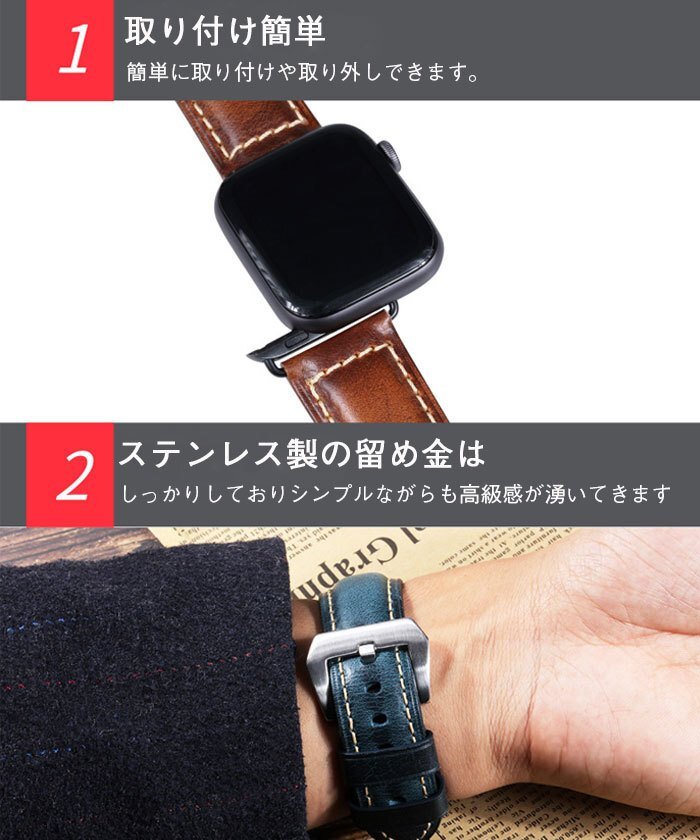 【対応機種】Apple Watch 5/4/3/2/1 。38mm/40mm 42mm/44mm のコンパチブルApple watchを簡単に交換可能です。