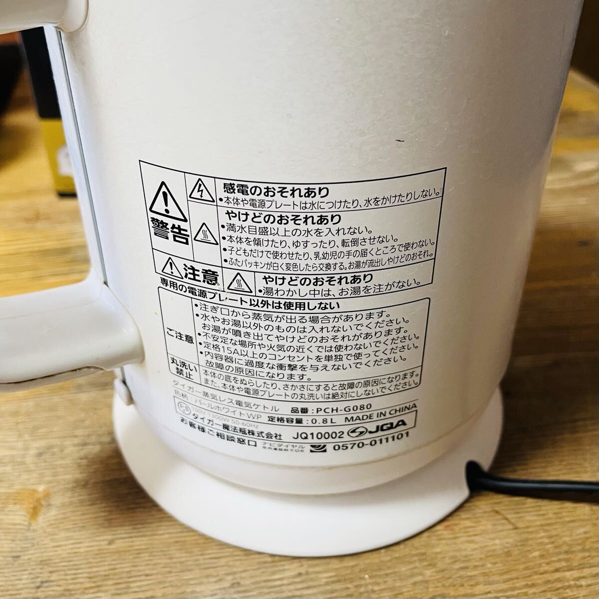 タイガー 電気ケトル 「わく子」 800ml ホワイト PCH-G080-W