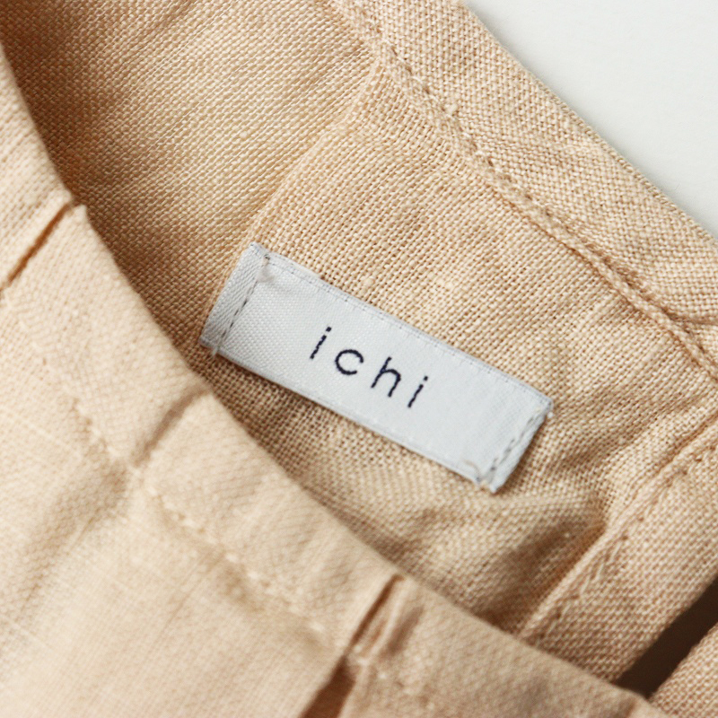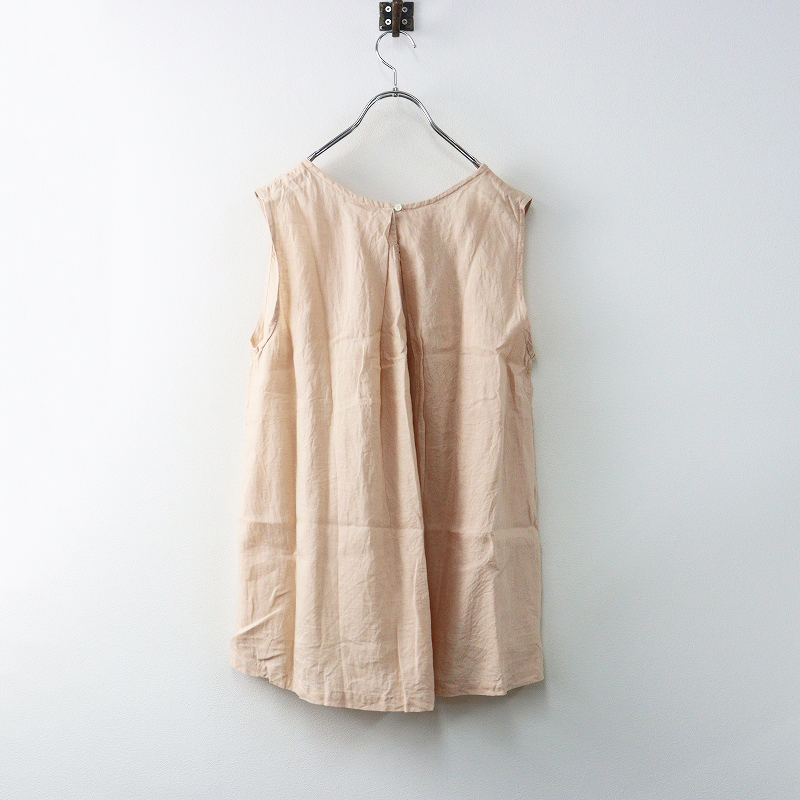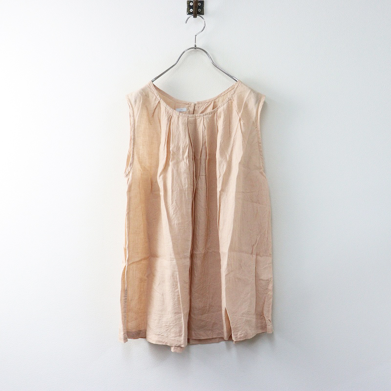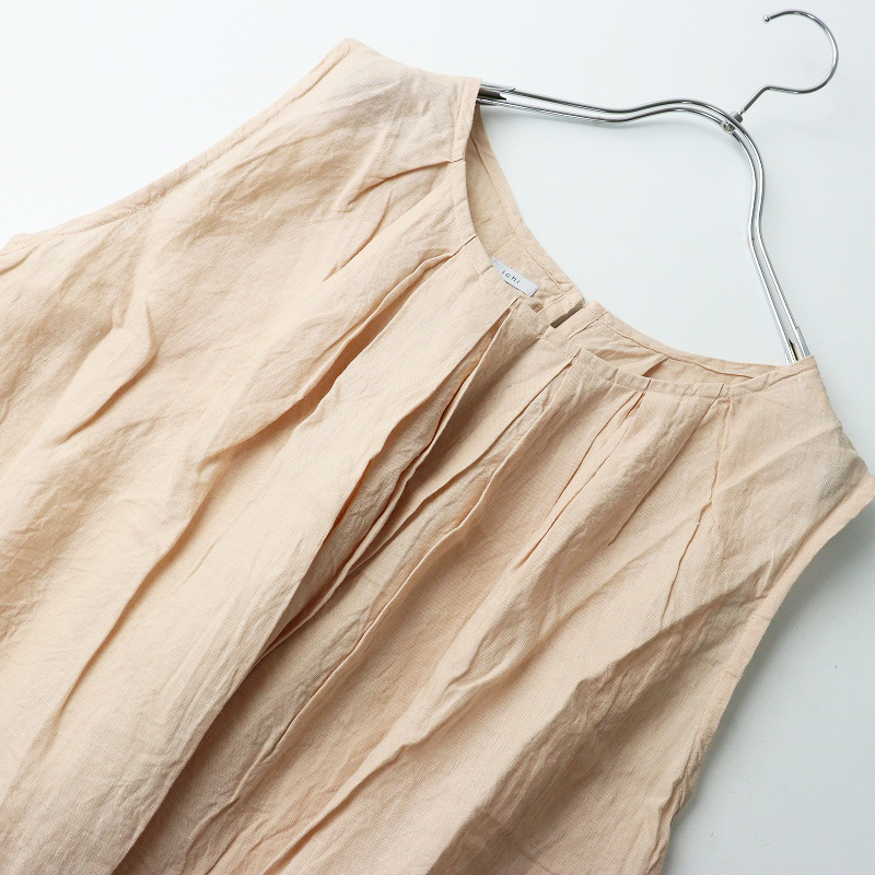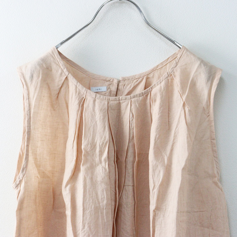 イチ ichi リネン タックノースリーブチュニック‖ピンクベージュ トップス ブラウス ギャザー【2400014675580】