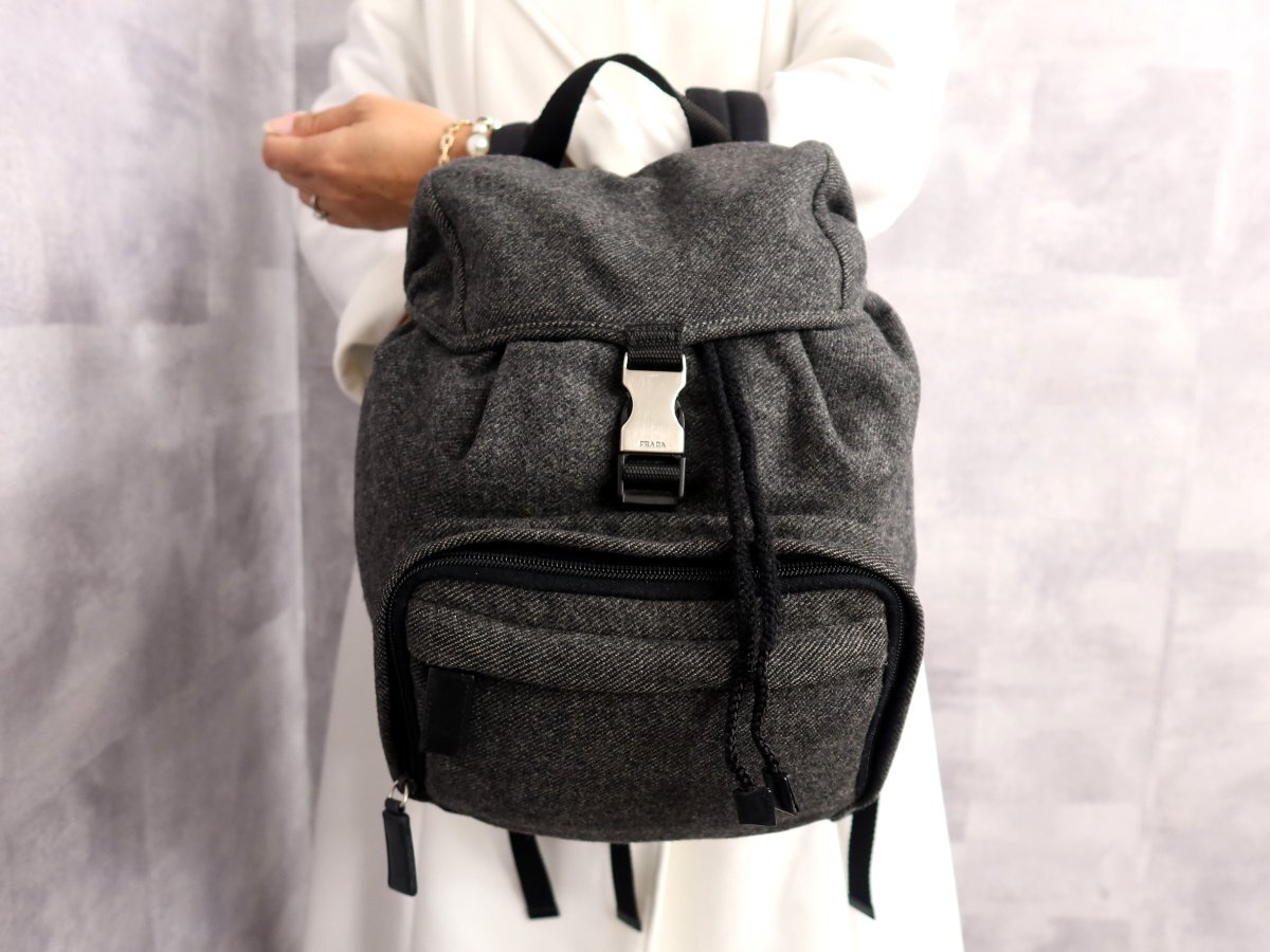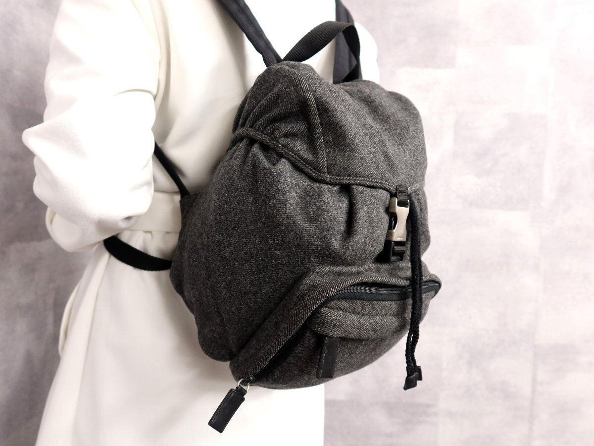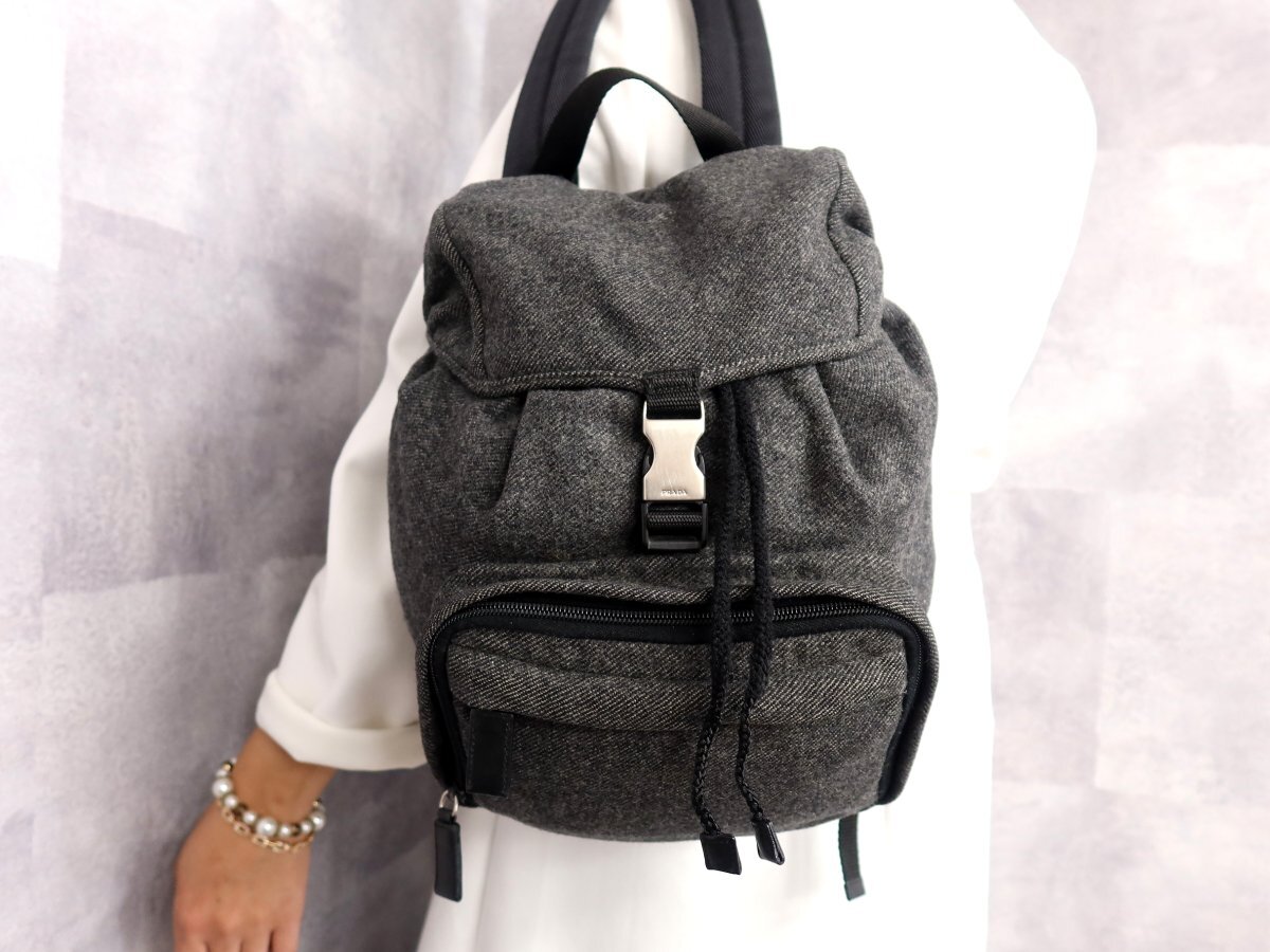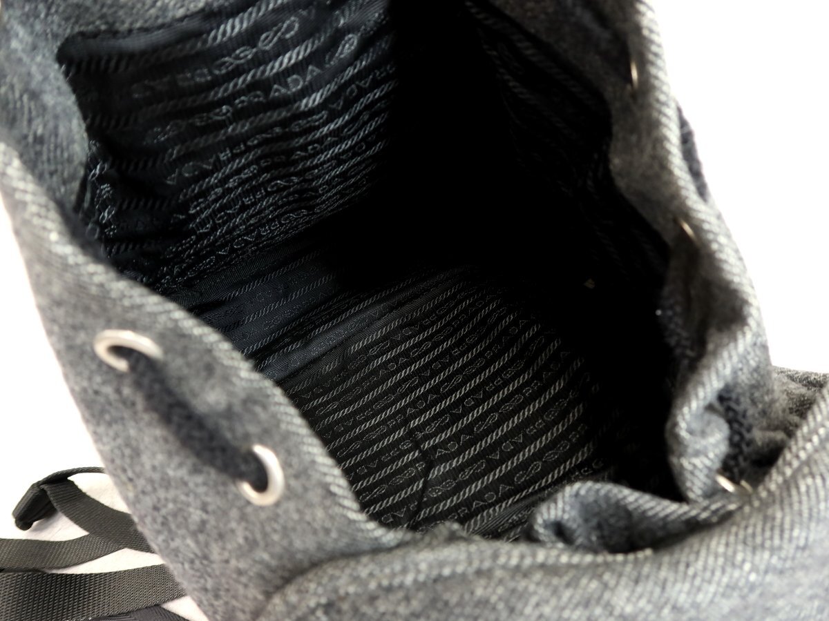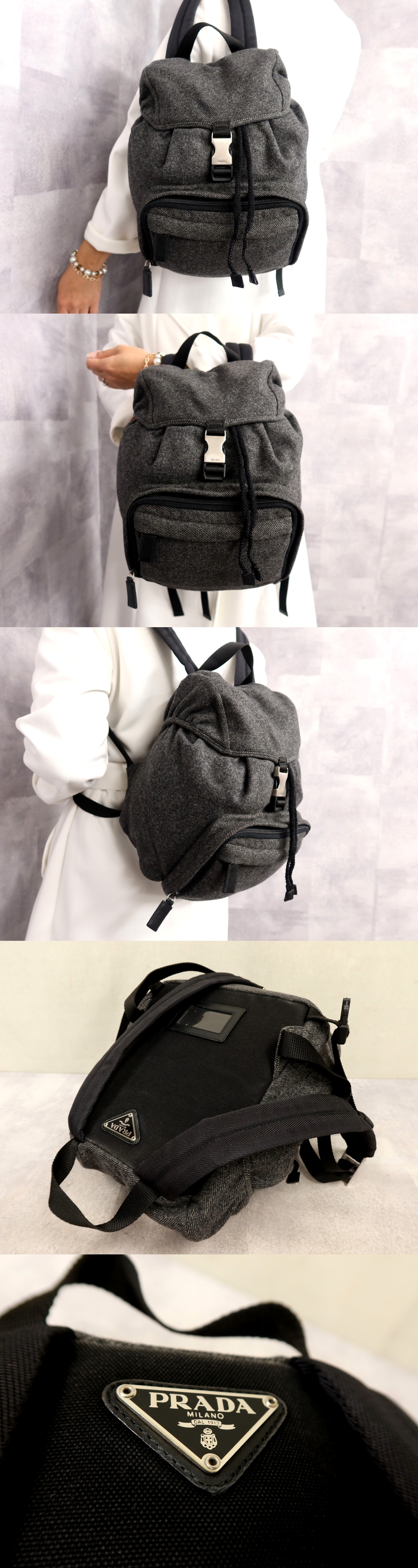 ●超美品●PRADA プラダ●三角ロゴプレート●ウール カーフ レザー 本革●リュックサック●グレー 黒●シルバー金具●B5 かばん●Js62323