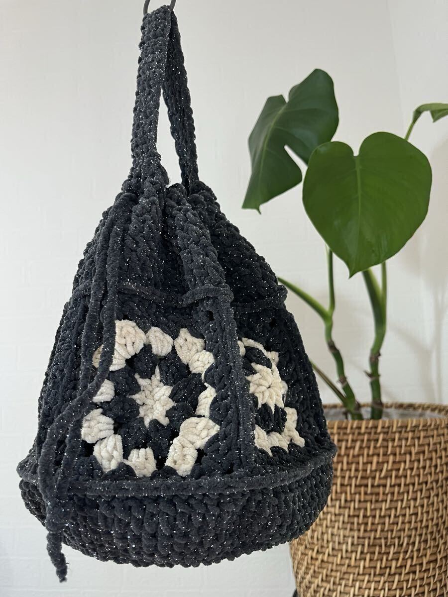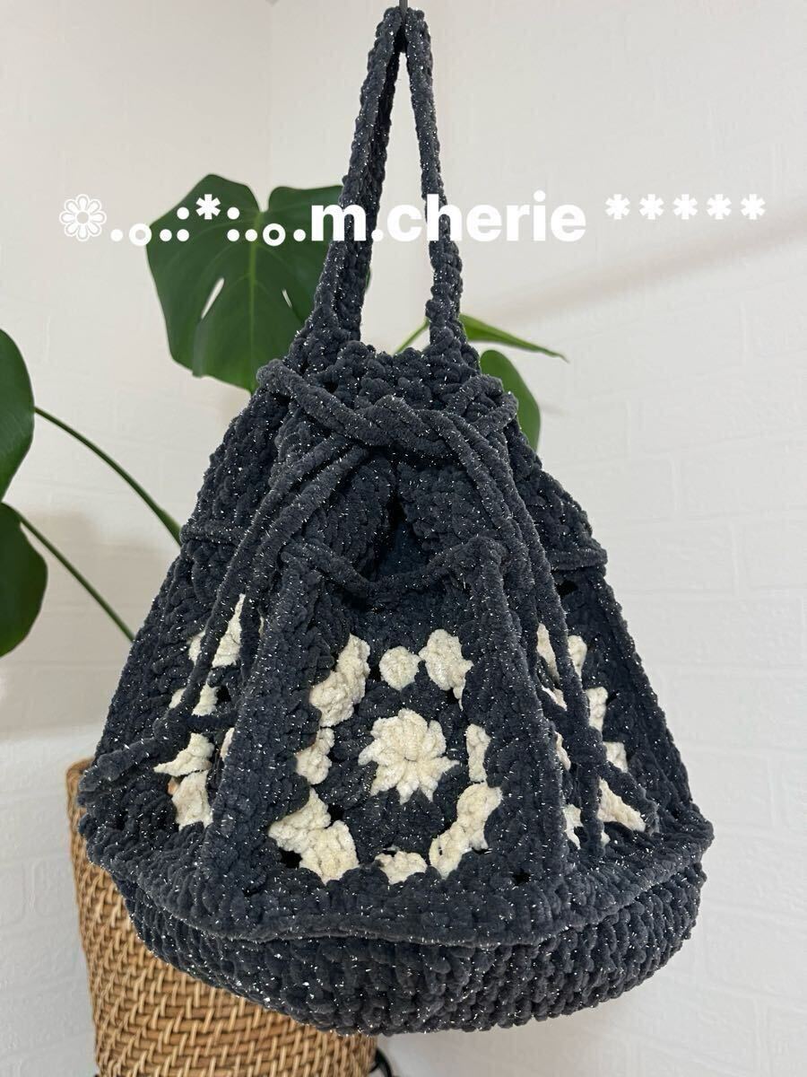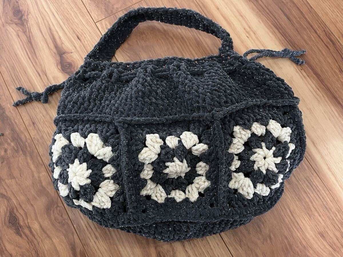 こちらはモチーフ編みの巾着ハンドバックです(*^^*)