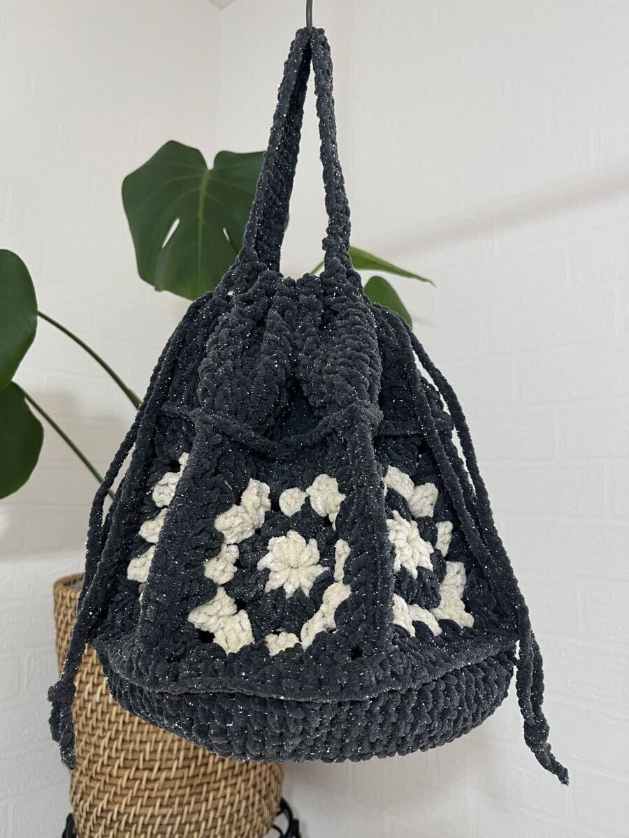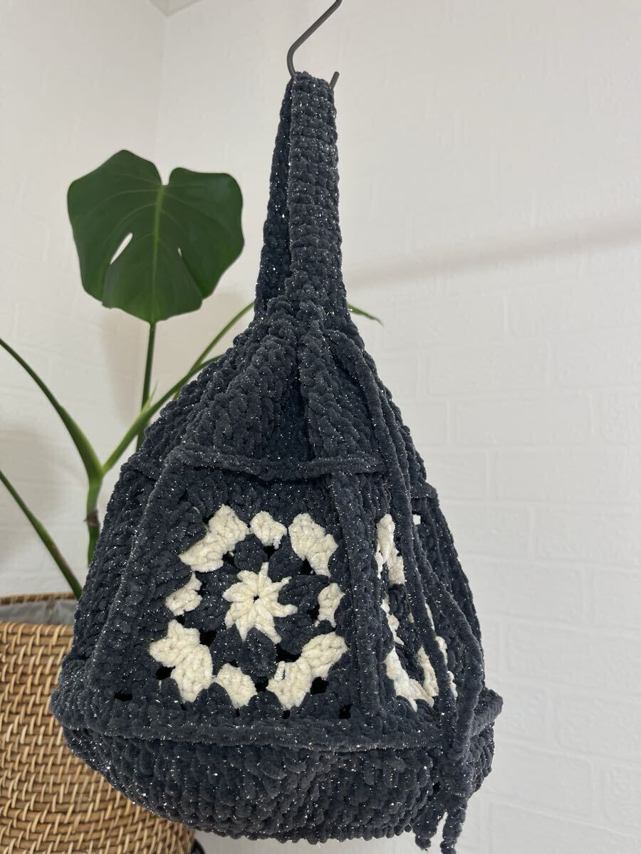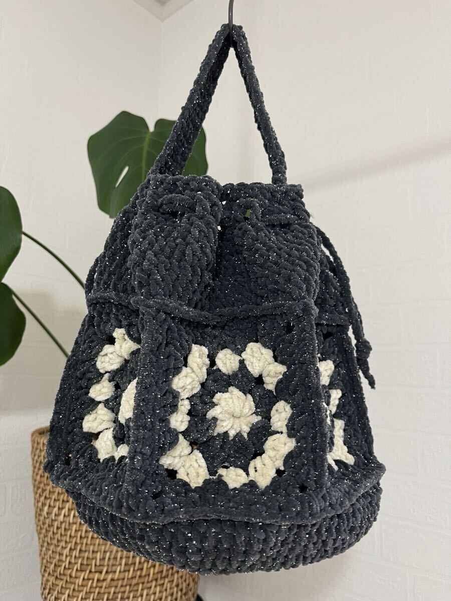 こちらはモチーフ編みの巾着ハンドバックです(*^^*)