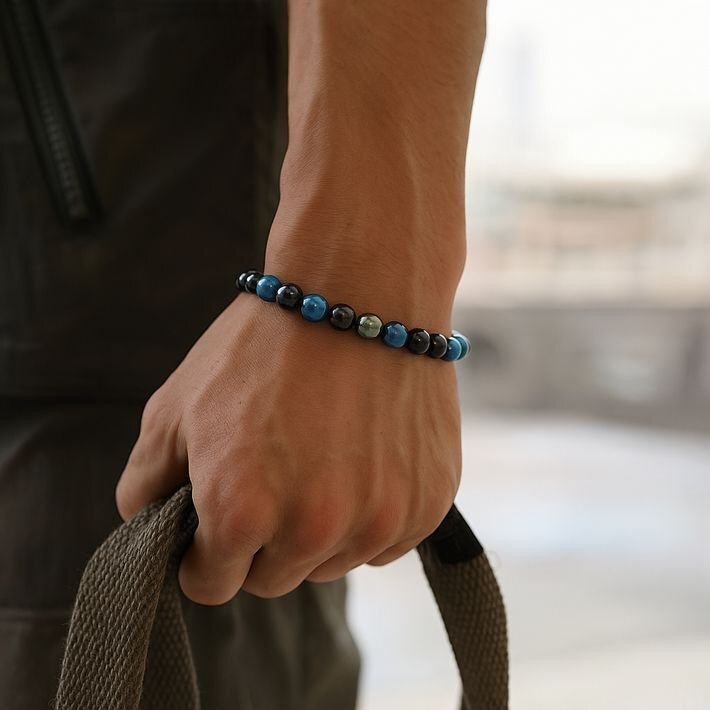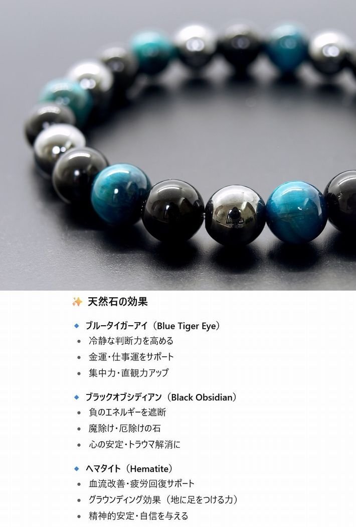 「ブルータイガーアイ」「ブラックオブシディアン」「ヘマタイト」の三種を組み合わせた