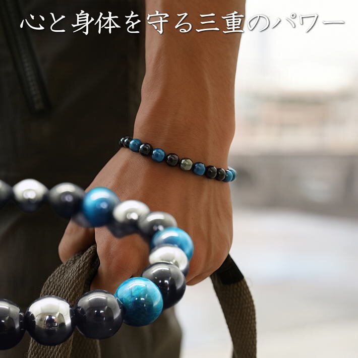 パワーストーン ブレスレット ブルータイガーアイ ブラックオブシディアン 黒曜石 ヘマタイト 天然石 7986660 ワンカラー 新品