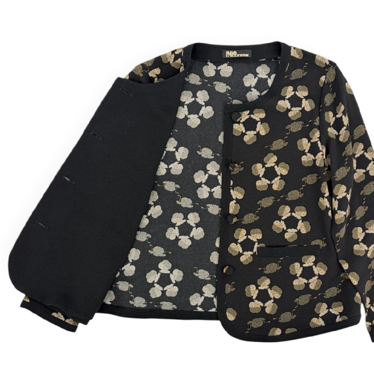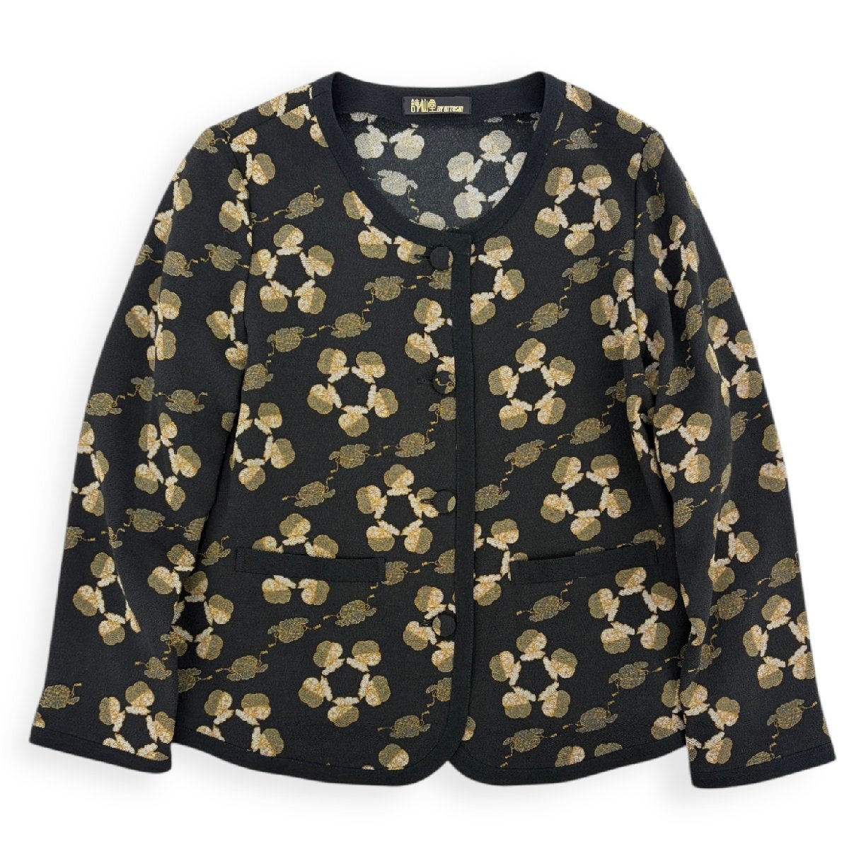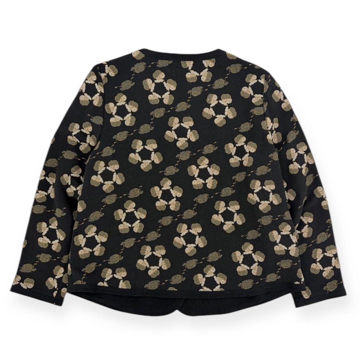 | アイテム | 和柄 総柄 ちりめん ノーカラー 前ボタン ジャケット カーディガン 羽織 |