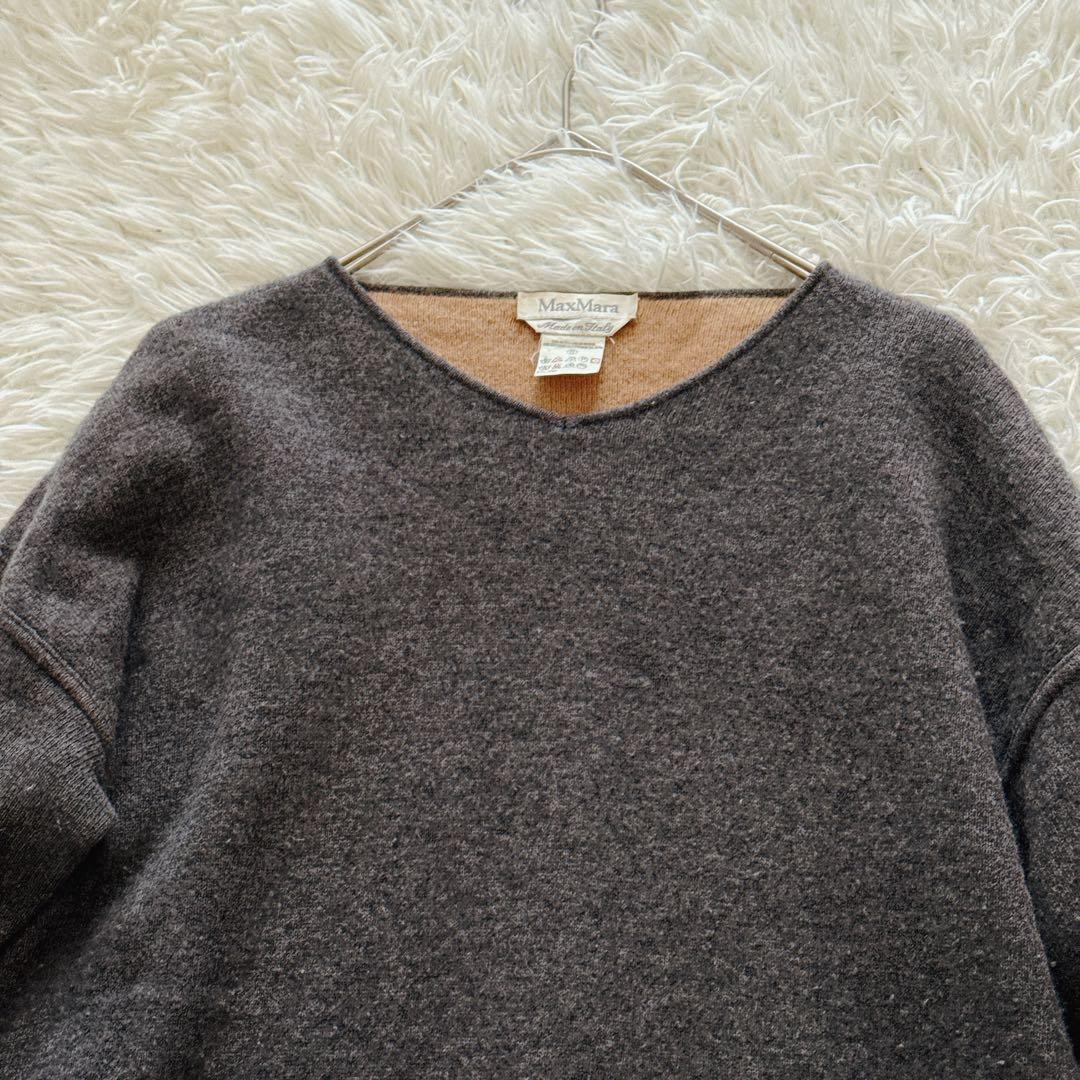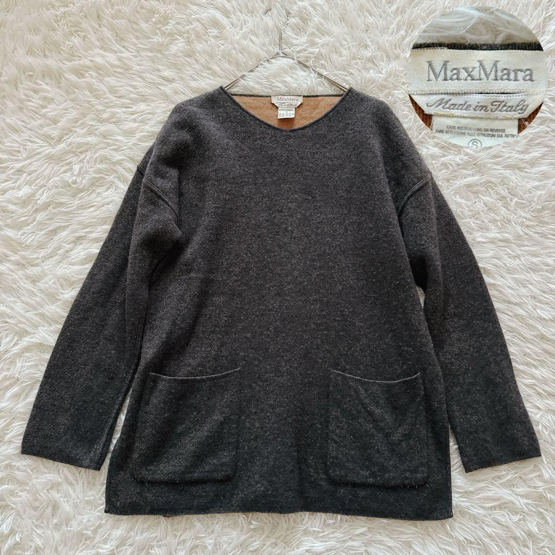Max Mara マックスマーラ 白タグ ニット プルオーバー 長袖 トップス ポケット スリット アンゴラ混 カシミヤ混 レーヨン ウール Sサイズ ダークブラウン 高級 オフィスカジュアル イタリア製