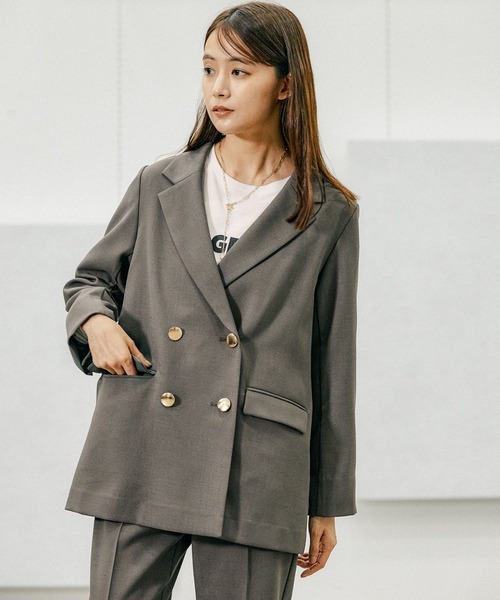 キーワード:ジャケット テーラードジャケット レディース ダブル 無地