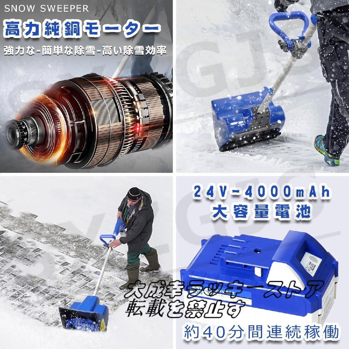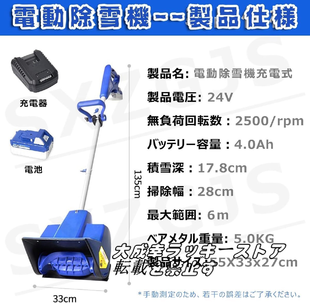 【充電式バッテリー】: 24v-4000mahバッテリー、強力なパワーと長いバッテリー寿命。 フル充電で約 40 分間使用できます。 毎分300ポンドの雪を動かすことができ、最大投雪距離は約6?8メートルです。
