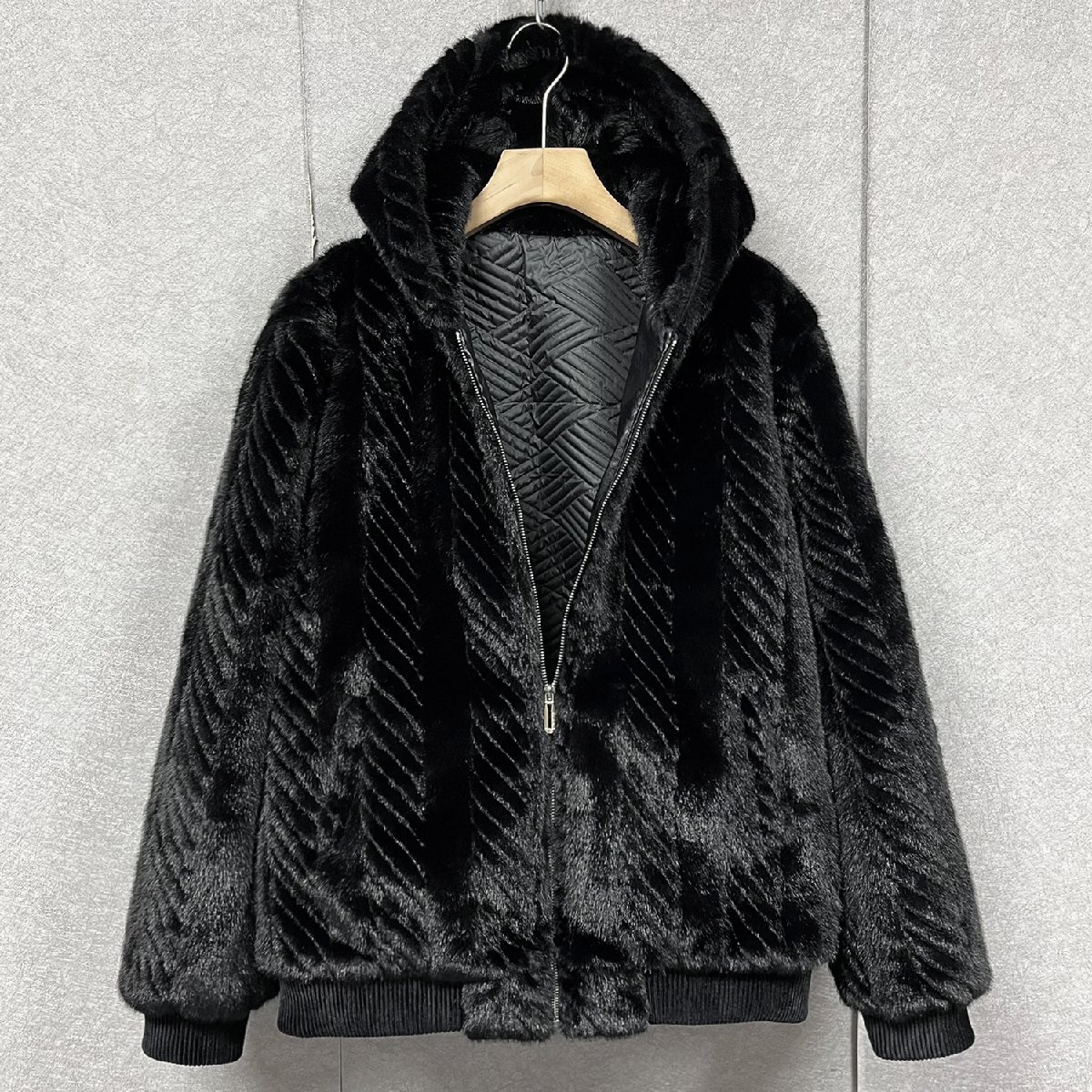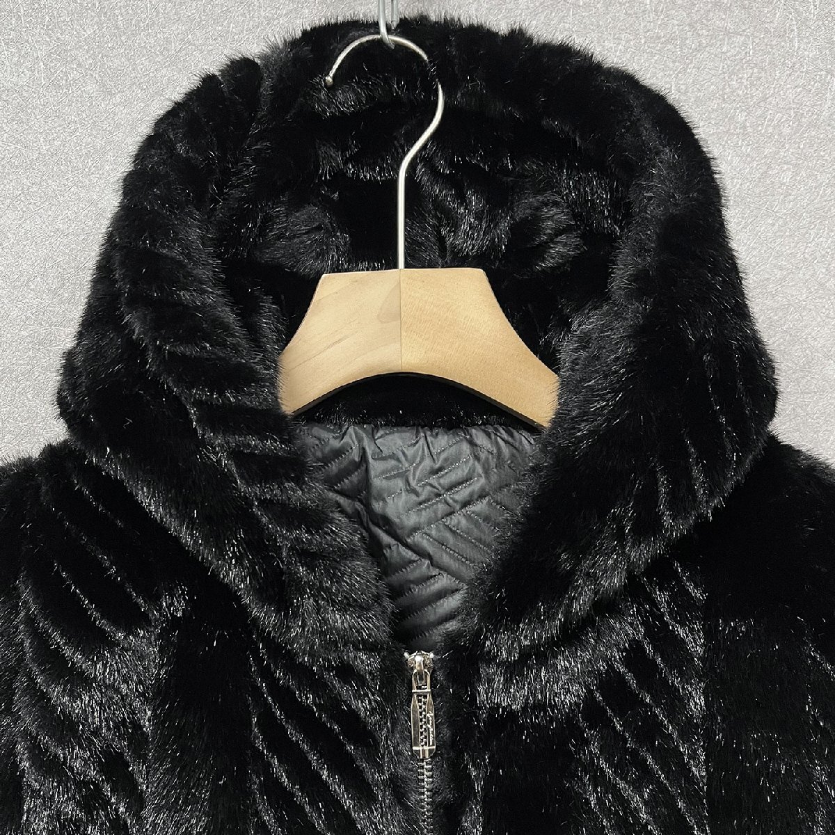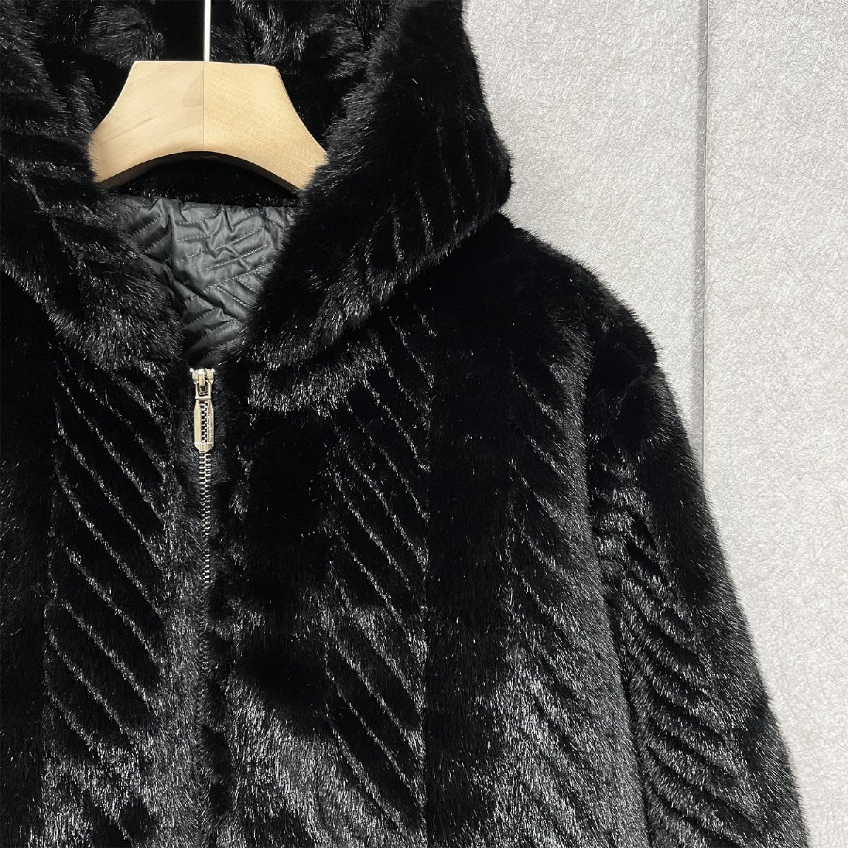 ファーコート イタリア製造 上級ミンク/カシミヤ混 暖かい ソフト 厚手 防寒 艶 毛皮コート ジャケット フード付き アウター 冬 SIZE:M