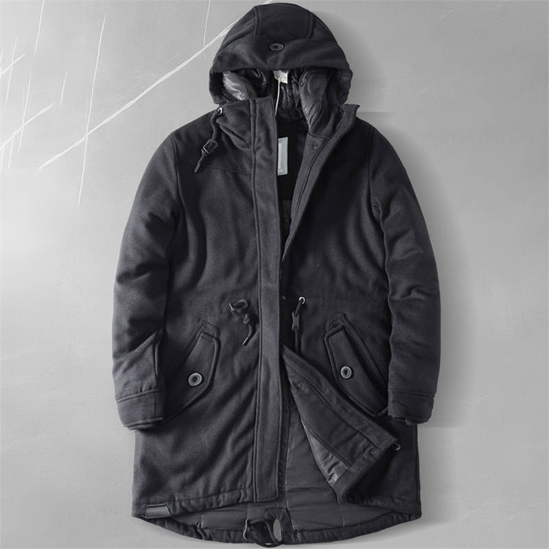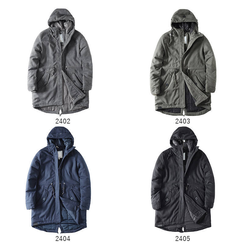 2405-2XL黒色 中綿コート メンズ ミドル丈 フード付き コート 新品 防寒 防風 通勤 暖かい 着心地良い カジュアル ドローコード アウター