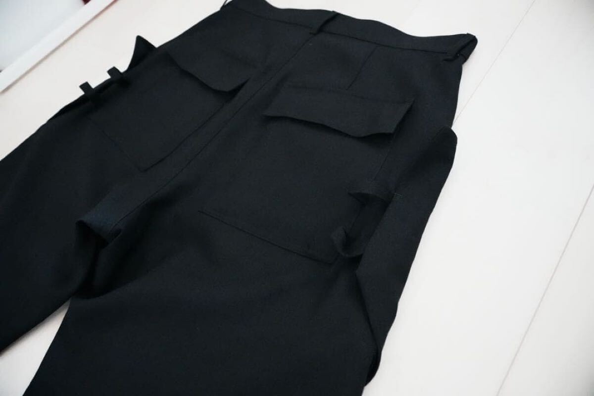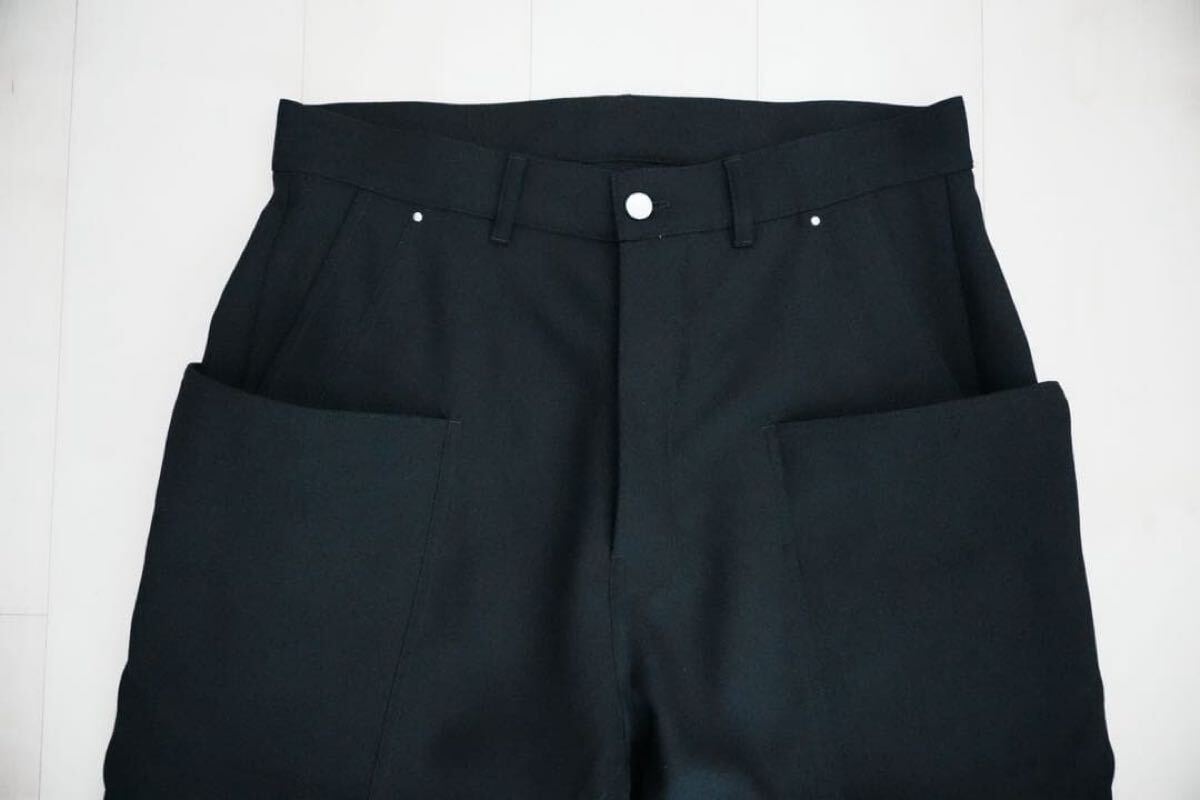 しっかりとしたウールギャバ素材で、上品なドレープ感と耐久性を兼ね備えています。WD素材とは違い、よりフォーマルでミニマルな質感となります。
