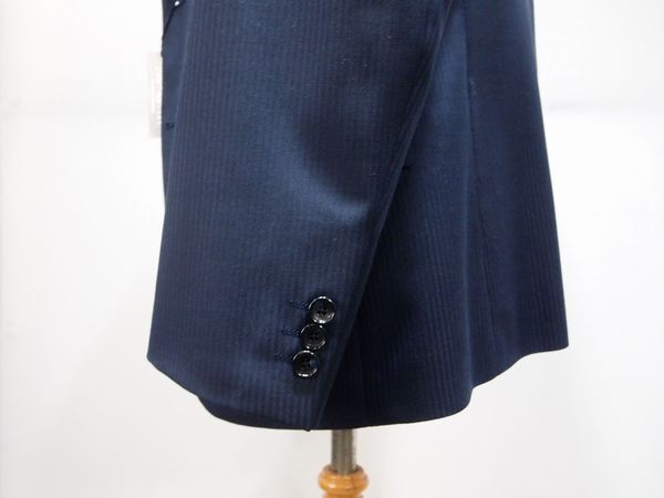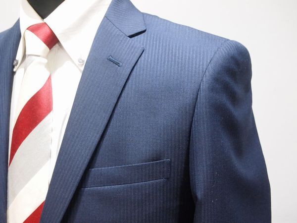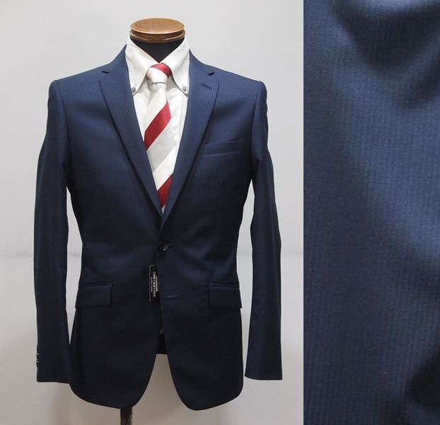 秋冬物■スタイリッシュ■総裏スーツ■5765■lesliecrantノータック 2っ釦スーツ■A5■濃紺・織ストライプ■パンツ家庭洗濯可能