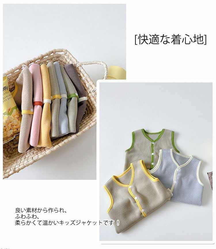 フリースベスト キッズチョッキ 子供ジャケット ベストVネック フリース ベスト 男の子 女の子 ボーイズ ガールズ☆多色/80~150選択/1点