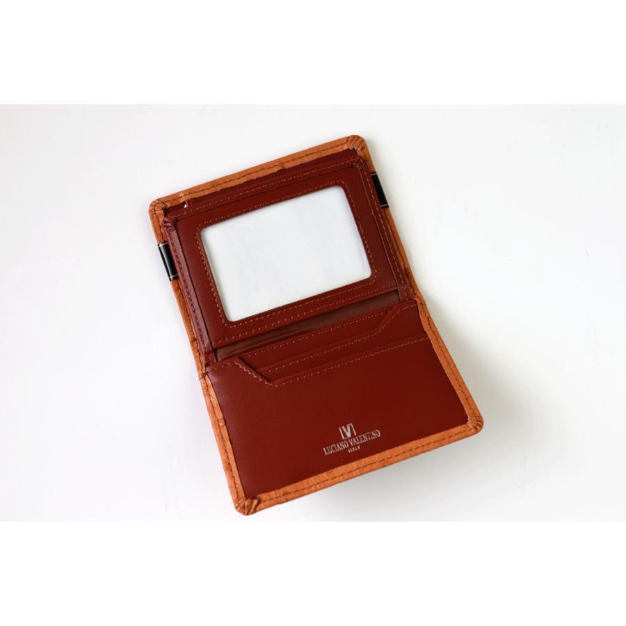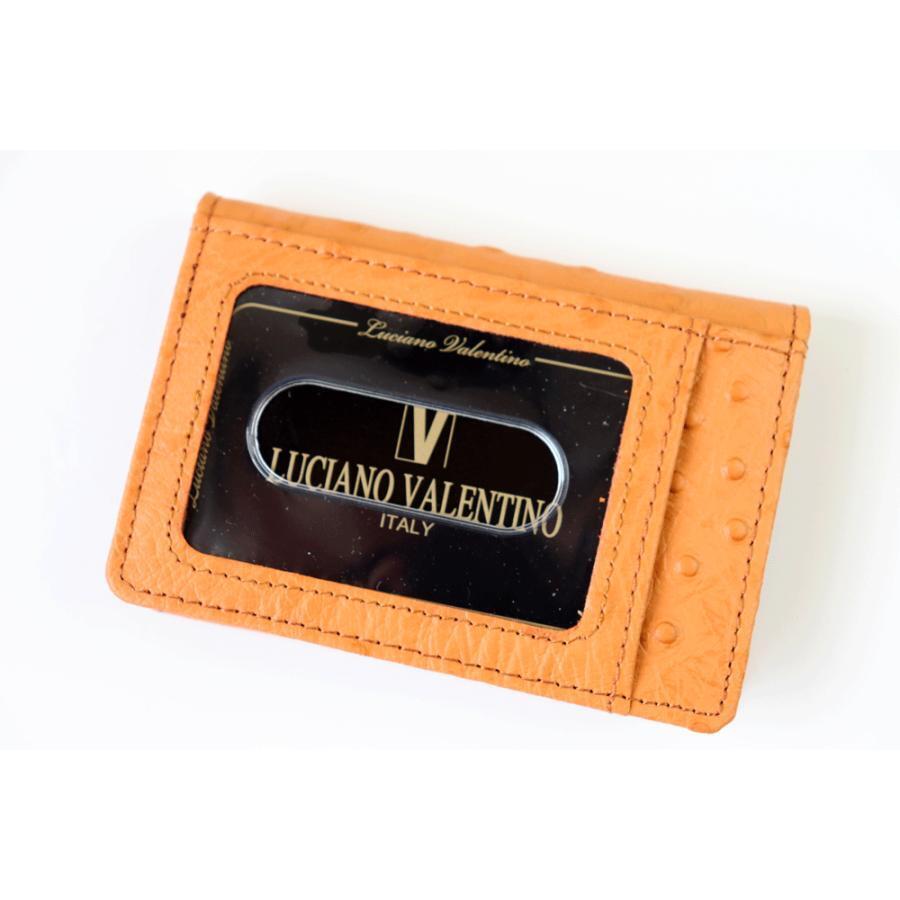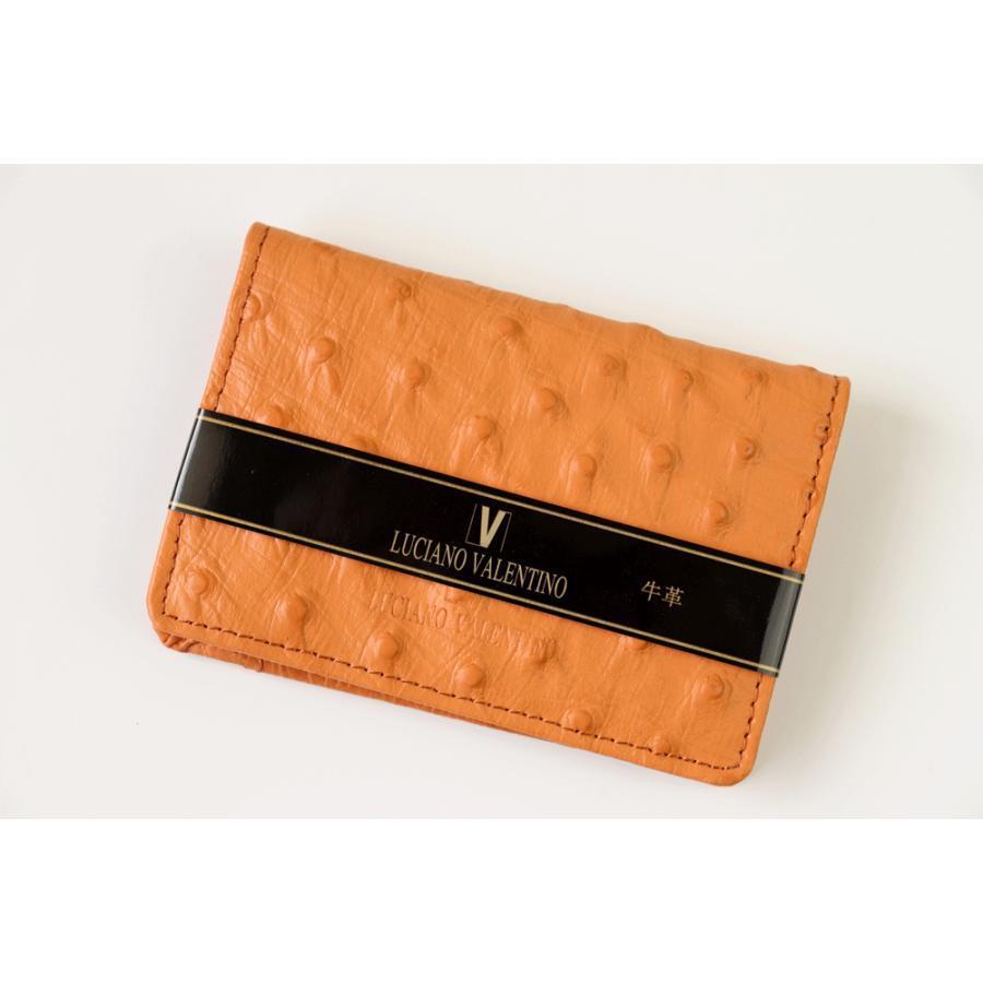パスケース キャメル オーストリッチ型押し 牛革 天然本革 定期入れ 免許証入れ LUCIANO VALENTINO ルチアーノ バレンチノ