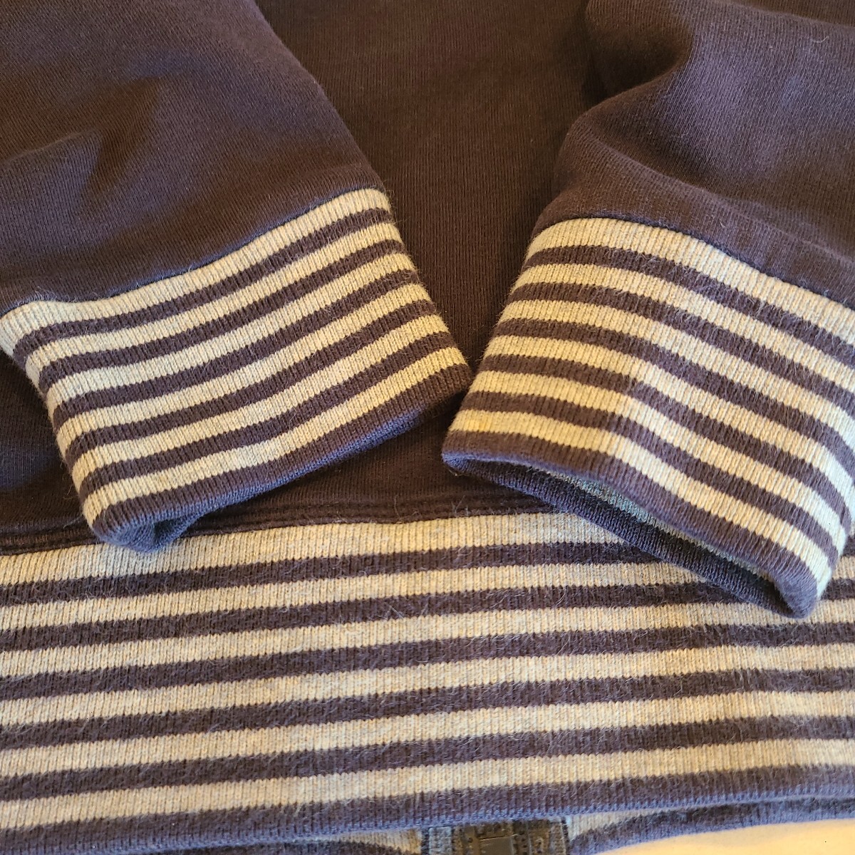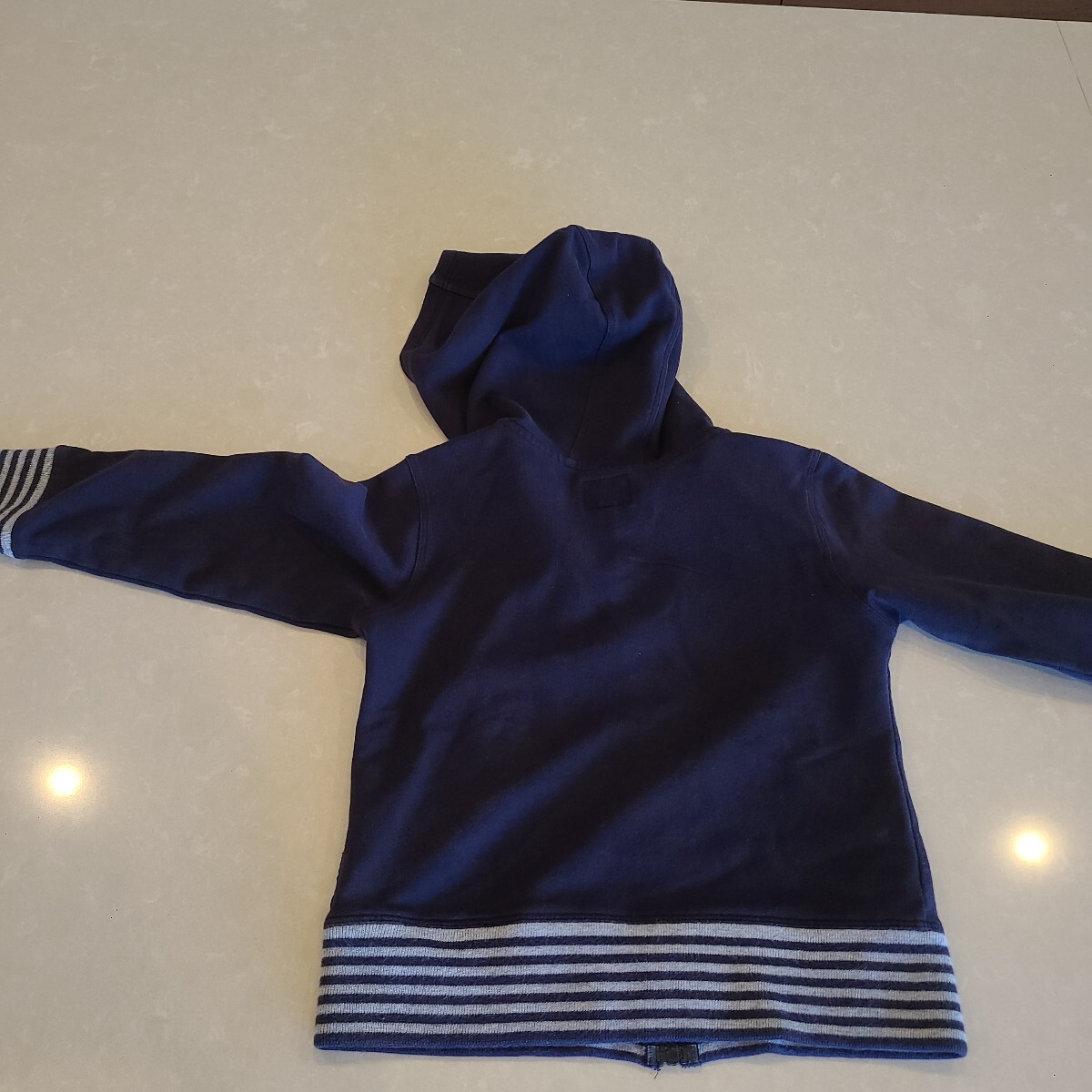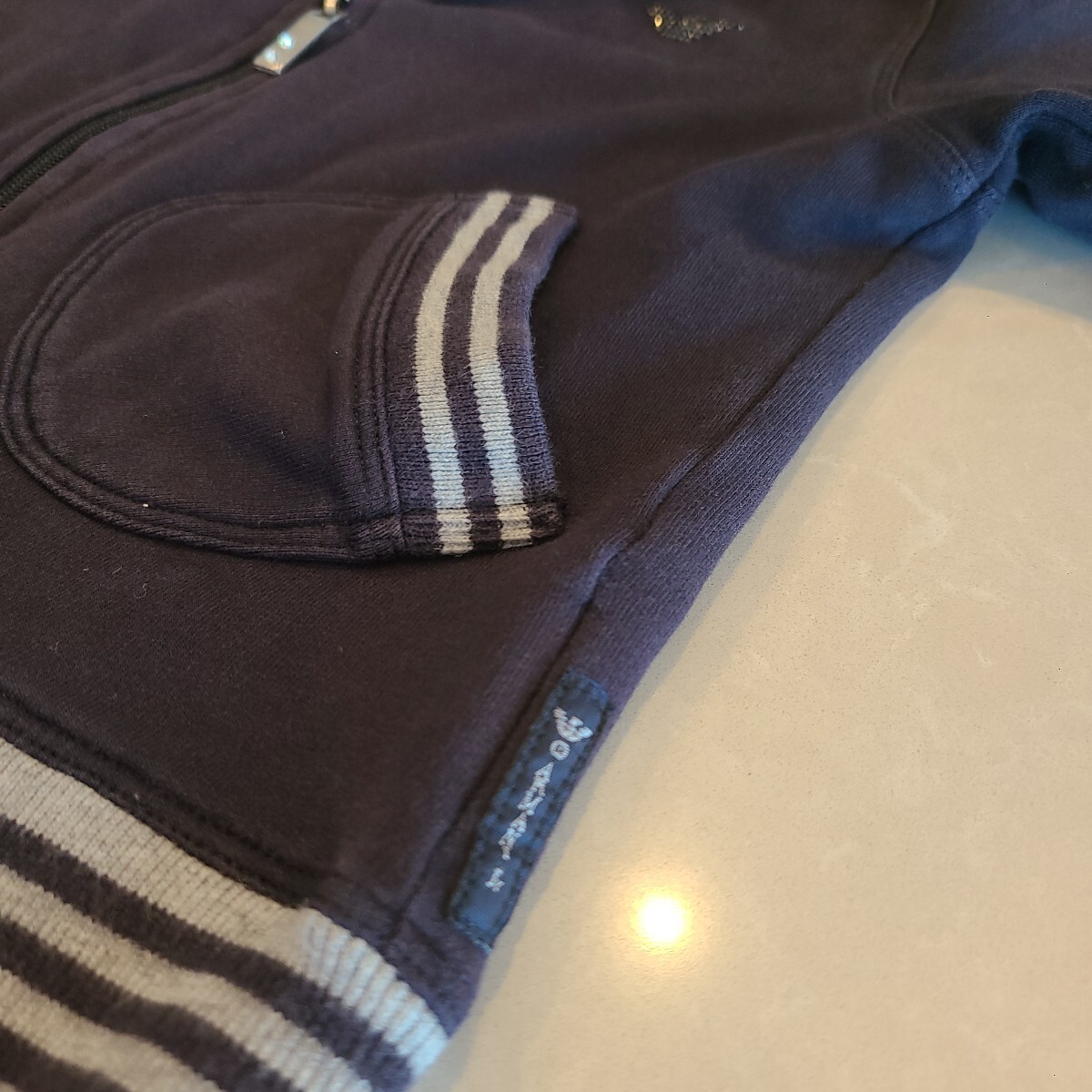 タンス整理出品です。アルマーニジュニアの薄手パーカーです。元々はセットアップだったのですが、どこかにパンツは紛失したようです。プレゼントでもらったのですが、あまり着ていなかったので非常に綺麗です。アルマーニらしく、ポイントやジップのクリスタルとか細かいところまでおしゃれです。色目的には男の子用だと思いますが、女の子でも着れなくはないと思います。サイズは4A(106)となります。中古ですのでノークレーム・ノーリターンでお願いします。