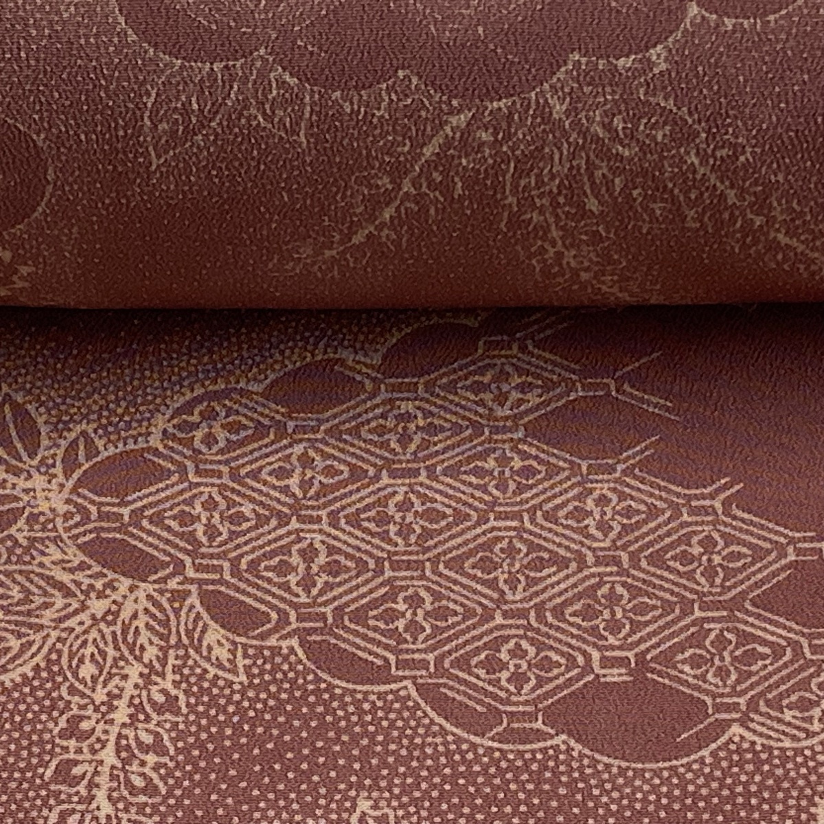 | 反物 秀品 小紋 伊と幸 雲文 草花 縮緬 薄小豆 正絹 【中古】 |