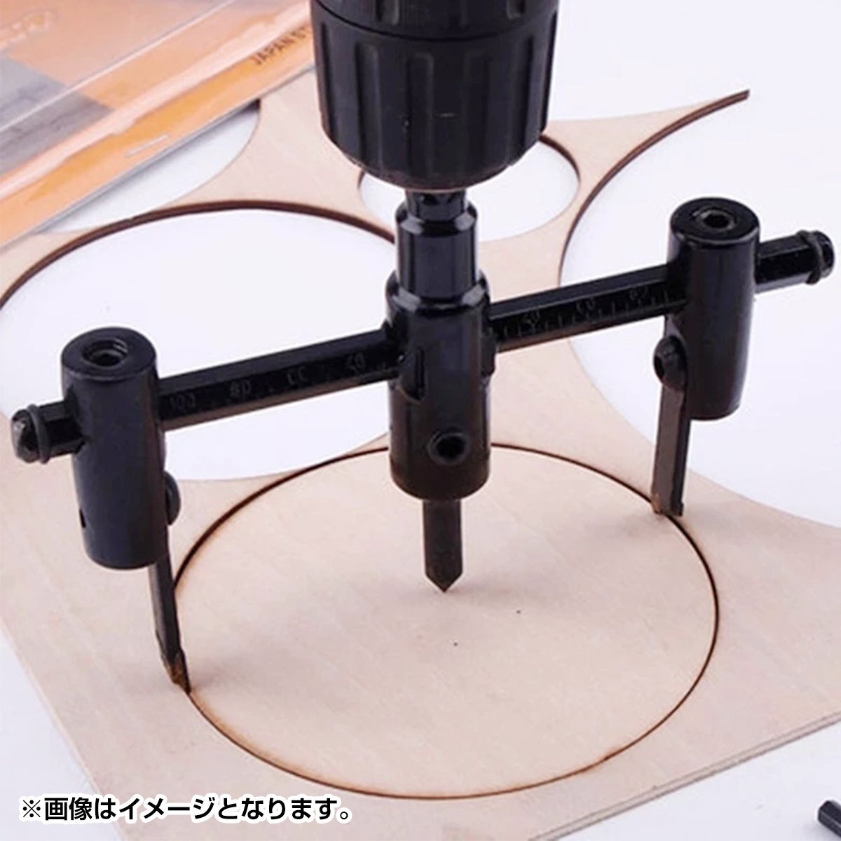 ◆電動ドライバーに取り付け、鋭利な2本の刃が木材をサークル上に切り抜きます。