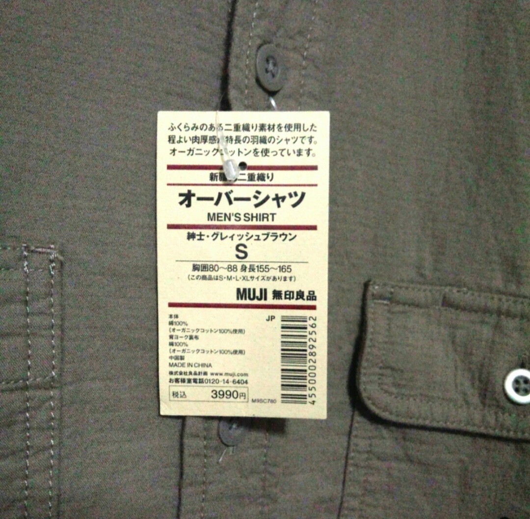 格安 新品MUJI無印良品S新彊綿二重織りオーバーシャツ オーガニックコットン100%綿100%コットンCOTTON100%COTTONグレイッシュブラウン 無地