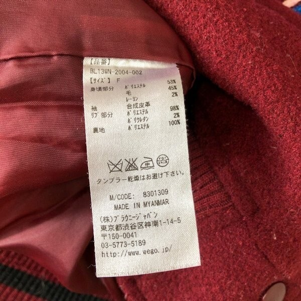 BROWNY WEGO ウィゴー レディース フェイクレザー切り替え 起毛 スタジャン F ボルドー黒 です。