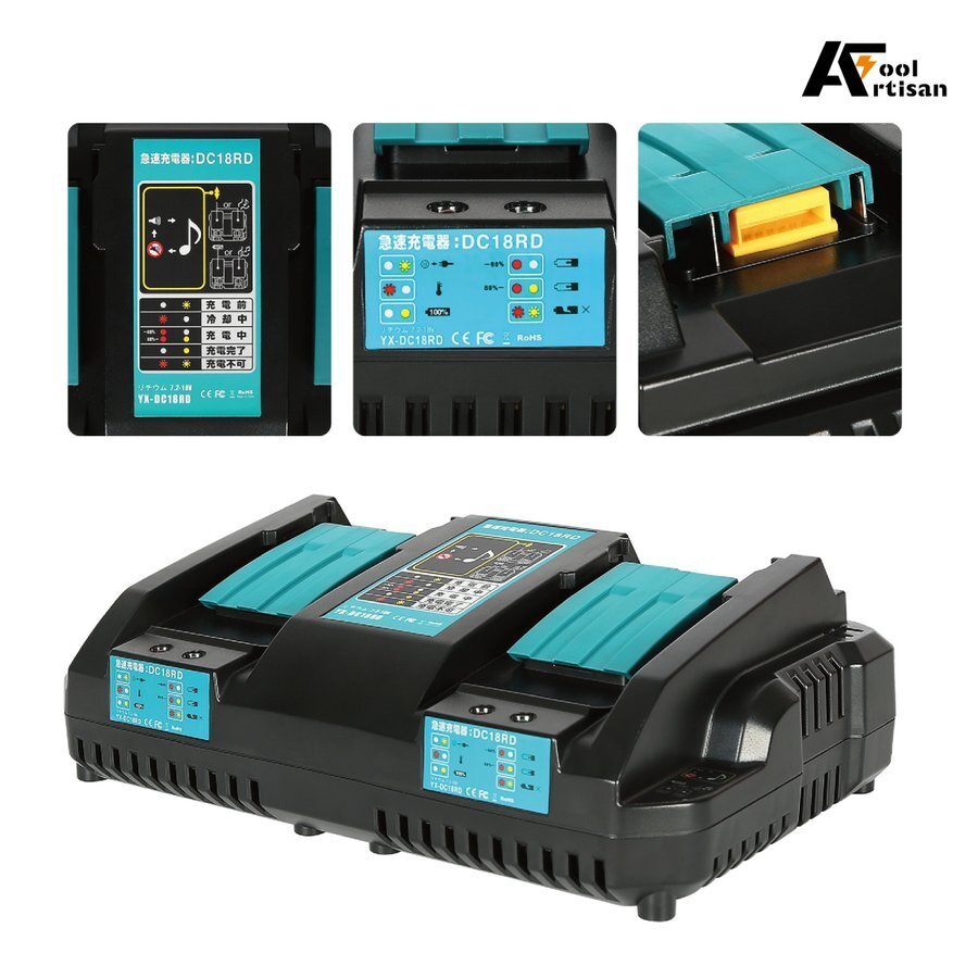 DC18RD(2口充電器)アルチザンツール マキタ互換急速充電器 14.4V ~ 18V対応 bl1430 bl1440 bl1450 bl1460 bl1830 bl1840 bl1850 b1860
