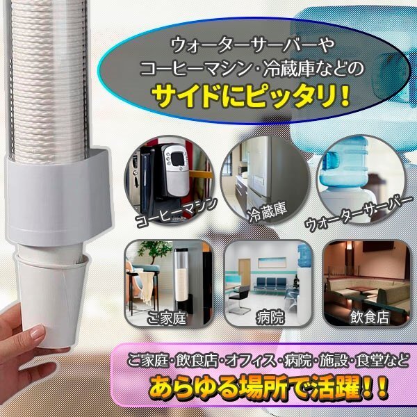 カップ ディスペンサー 使い捨て 紙コップ プラスチックコップ ホルダー 7オンス 5オンス 3オンス 大容量 業務用 コップラック カップスタンド 壁付け ウォーターサーバー ホワイト