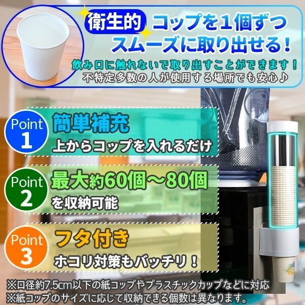 カップ ディスペンサー 使い捨て 紙コップ プラスチックコップ ホルダー 7オンス 5オンス 3オンス 大容量 ホワイト