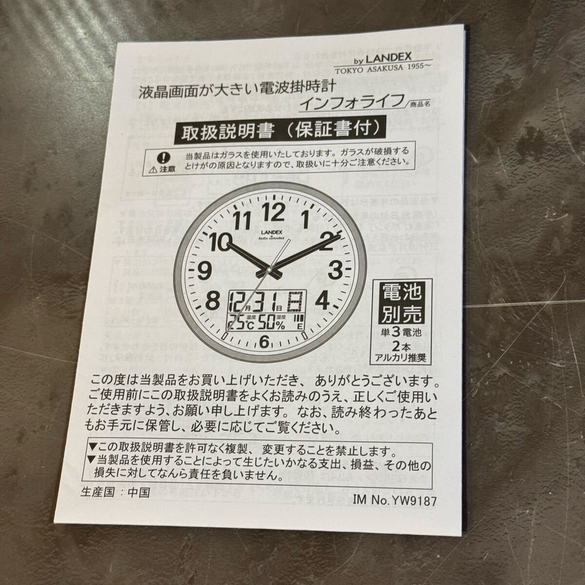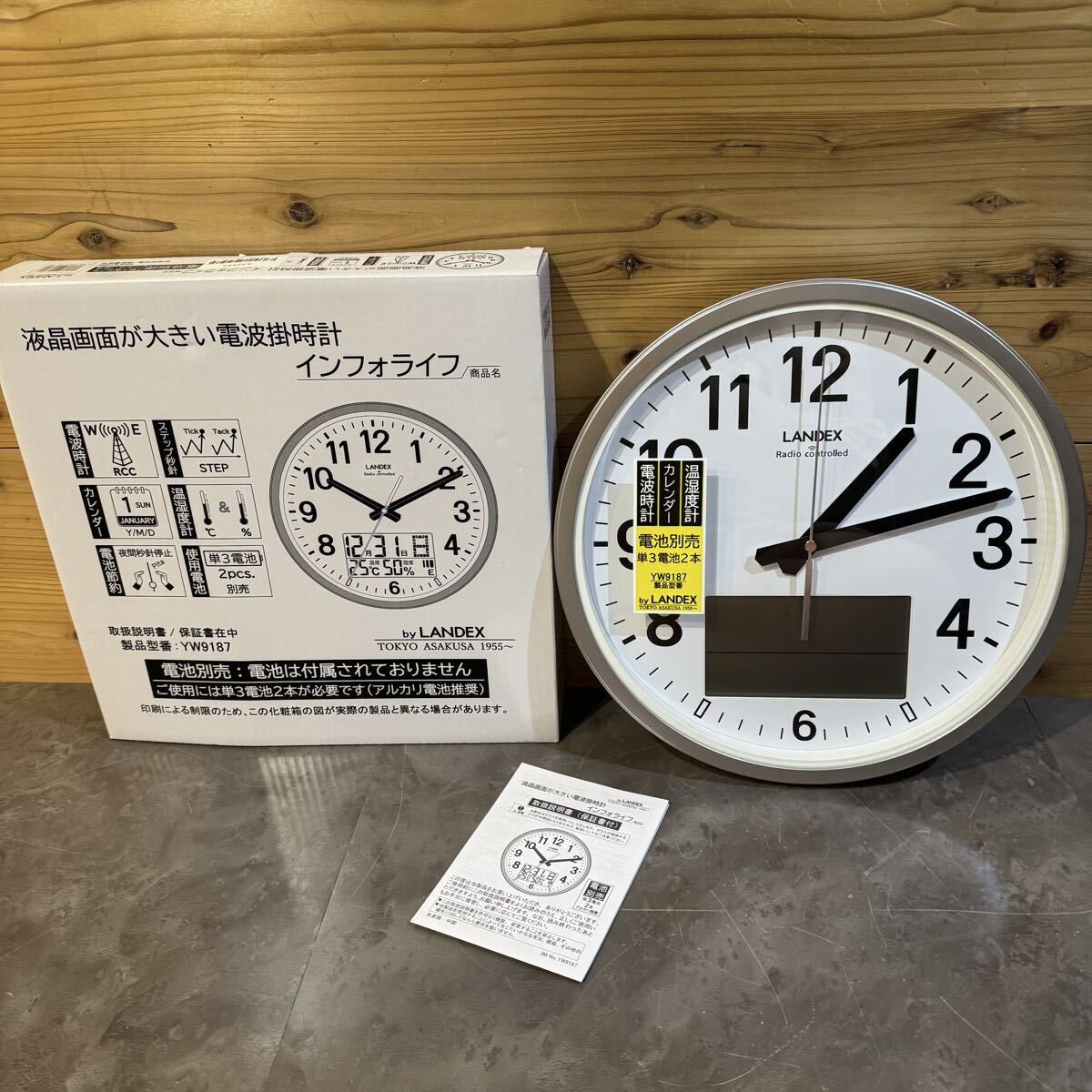 未使用☆LANDEX☆電波掛時計☆インフォライフ☆YW9187