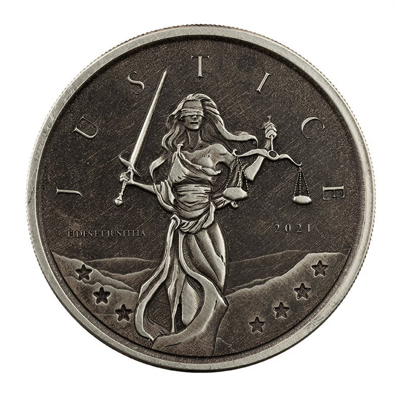 [保証書・カプセル付き] 2021年 (新品) ジブラルタル「正義の女神」純銀 1オンス アンティーク 銀貨