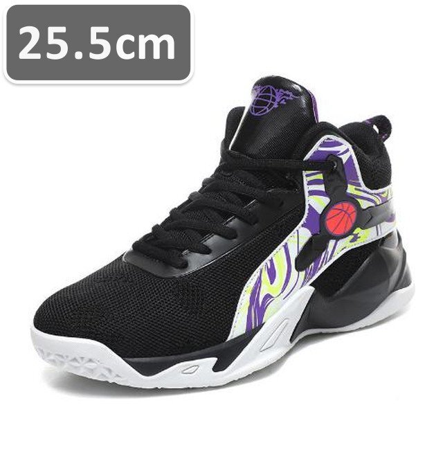 メンズ スニーカー ブラック 25.5cm 靴 シューズ 防滑 バスケットシューズ 通勤 通学 旅行 【238】